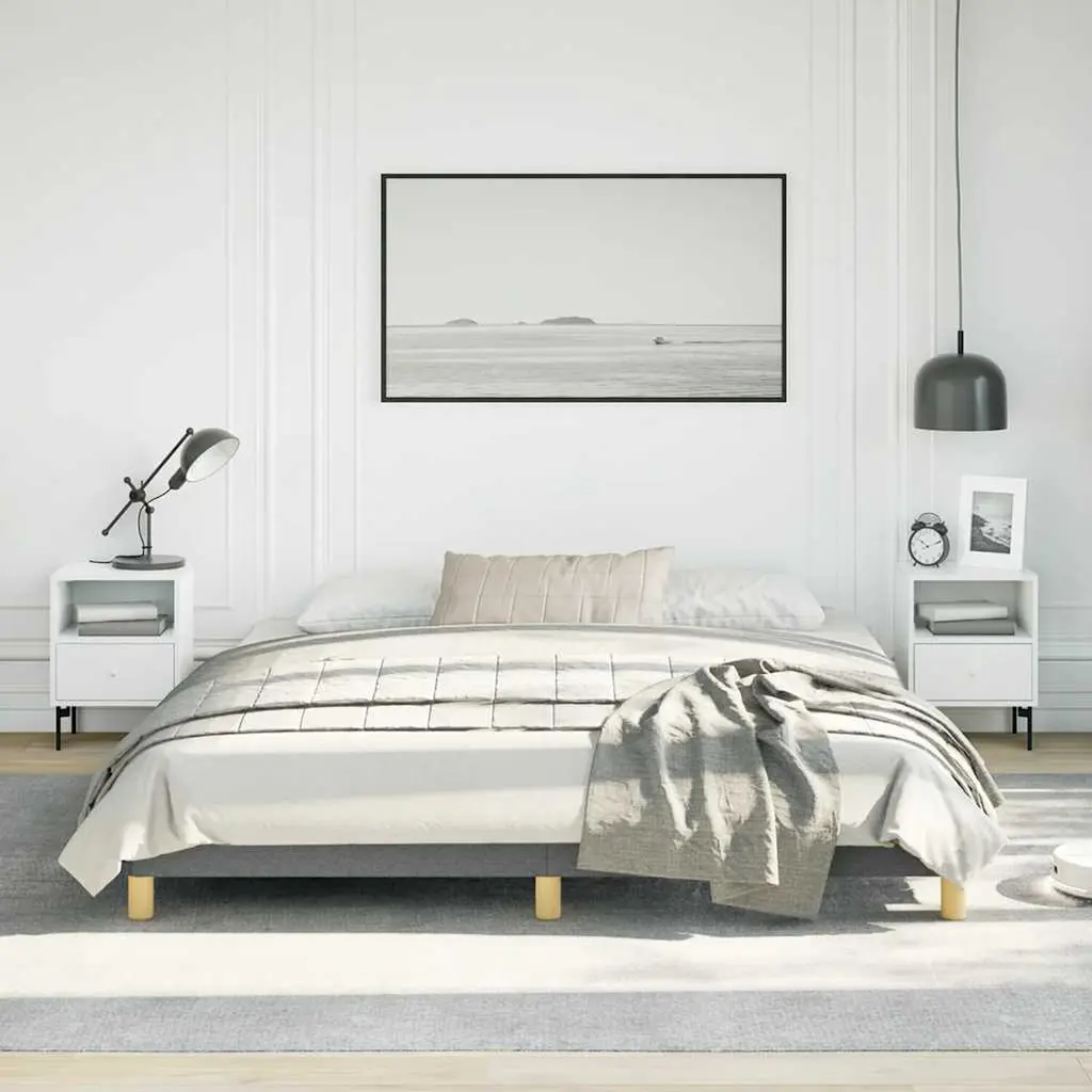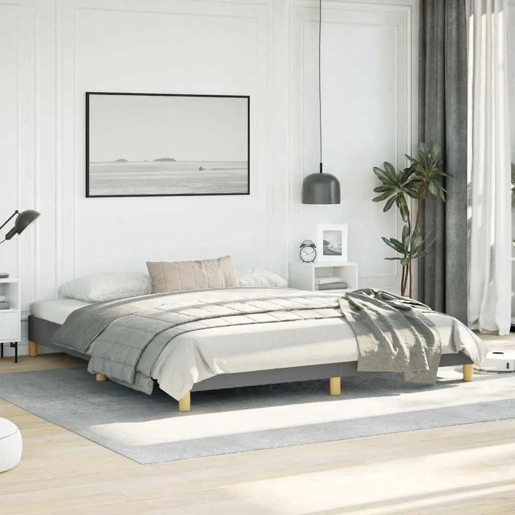 This California King fabric bed frame brings comfort and style to your modern bedroom. Made with a smooth, durable polyester surface and reinforced by a sturdy engineered wood frame, this bed is your cozy escape after a long day, and its sleek design fits right into any bedroom vibe. Stylish and Modern: This bed frame showcases a contemporary vibe, enhancing your bedroom’s decor.High Durability: Built with a solid engineered wood frame, it's made for long-term use.Breathable Material: The polyester fabric allows airflow, boosting comfort for a good night’s sleep.Quick and Easy Assembly: With an included manual, setting up your bed is a breeze.Versatile Use: Works great in different bedroom styles, easily accommodating mattresses.