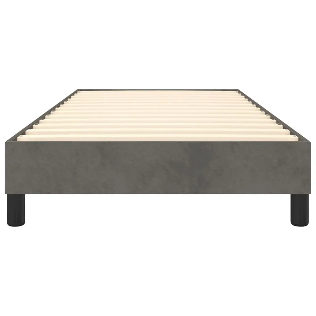 This dark gray velvet twin bed frame combines style and function, turning any bedroom into a chill zone. With its sleek design and luxurious velvet, it’s a standout piece that’s comfy, perfect for young adults or anyone wanting a minimalist vibe. Elegant Velvet Upholstery: The soft-touch velvet fabric enhances the bed's looks and comfort, making it a nice retreat after a long day.Robust Engineered Wood Frame: Made from quality engineered wood, this bed frame is built to support your sleep needs with durability and stability.Space-Saving Dimensions: The twin size is ideal for small bedrooms, guest rooms, or maximizing apartment space, without compromising style or comfort.Versatile Use: Great for various interior styles, the bed frame fits in with modern or contemporary decor, enhancing your room's vibe.Low Maintenance: With simple upkeep, a quick wipe with a soft cloth keeps the bed frame looking sharp, making it a great choice for busy lives.