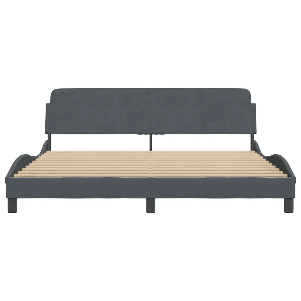This Modern Dark Grey Velvet Bed Frame is all about contemporary style with its soft velvet surface and curved headboard. Made to enhance your bedroom, it mixes comfort with a nice look, fitting seamlessly in both minimalist or flashy decor, and promises comfy nights for two. Stylish Design: The trendy wave design makes this bed frame a beautiful focal point in any bedroom. The sleek lines add to a modern but welcoming feel.Soft Touch: The soft velvet upholstery invites you to sink into comfort every night, enhancing the relaxation of the room.Spacious Dimensions: With measurements of 72 in width and 84 in length, this double bed is perfect for anyone who likes a bit of extra room for relaxation or reading.Durable Construction: Built with solid pine wood and metal, this bed frame guarantees long-lasting use, securely supporting your mattress.Ample Storage: The frame's height allows for space underneath, making discreet storage easy, helping keep your bedroom neat and tidy.