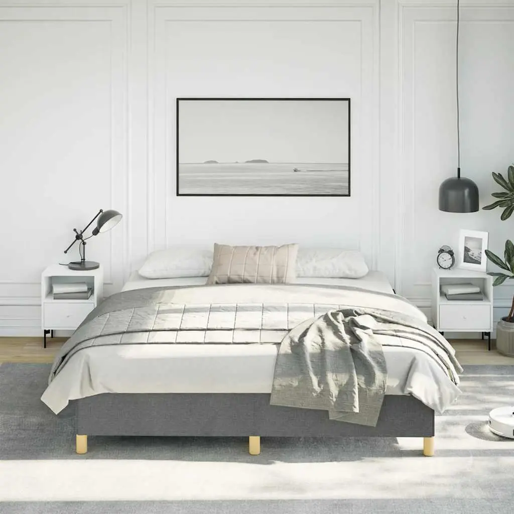 This California King bed frame redefines comfort and elegance in any modern bedroom. With its dark grey fabric finish, it effortlessly enhances your sleeping space while providing robust support for a serene night of sleep. Modern Aesthetic: The sleek design of this bed frame complements contemporary decor, making it a great addition to your bedroom. Its subtle grey invites a calming vibe, perfect for chill time.Breathable Material: Made with airy fabric, the bed frame lets air flow through, ensuring you stay comfy and cool while you sleep. The breathable nature of the fabric helps prevent overheating.Robust Durability: Built from engineered wood and sturdy fabric, this frame gives you a strong base that’s built to last. Its quality construction means it can handle daily use for years.Spacious and Functional: Designed to fit a California King mattress, it gives you plenty of room for you and your partner, making for a luxurious sleeping situation.Easy Assembly: Comes with straightforward instructions, so you can set it up quickly and without any fuss. Everything you need is included for your convenience.