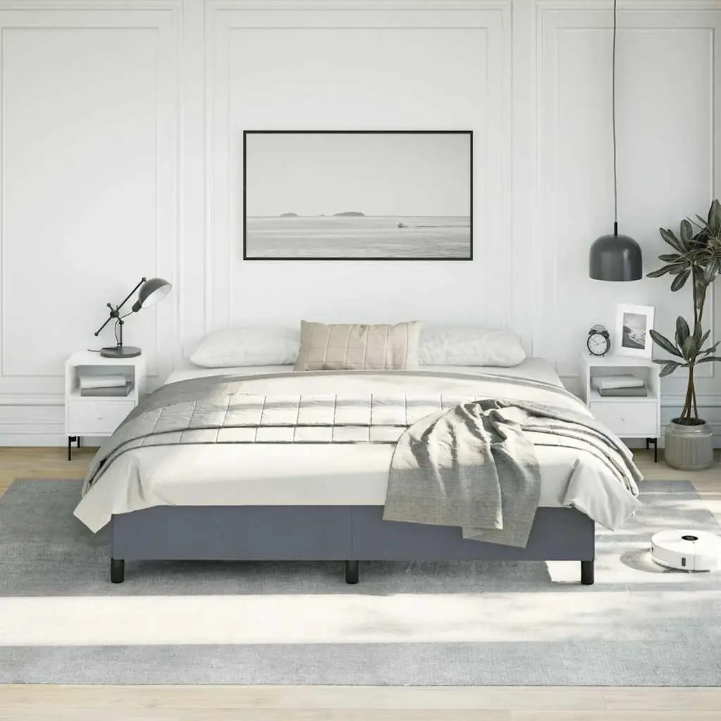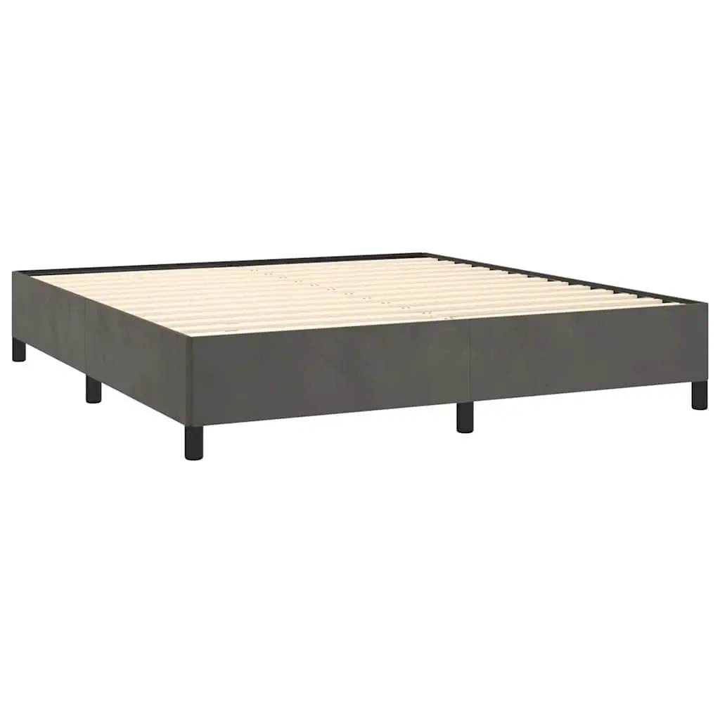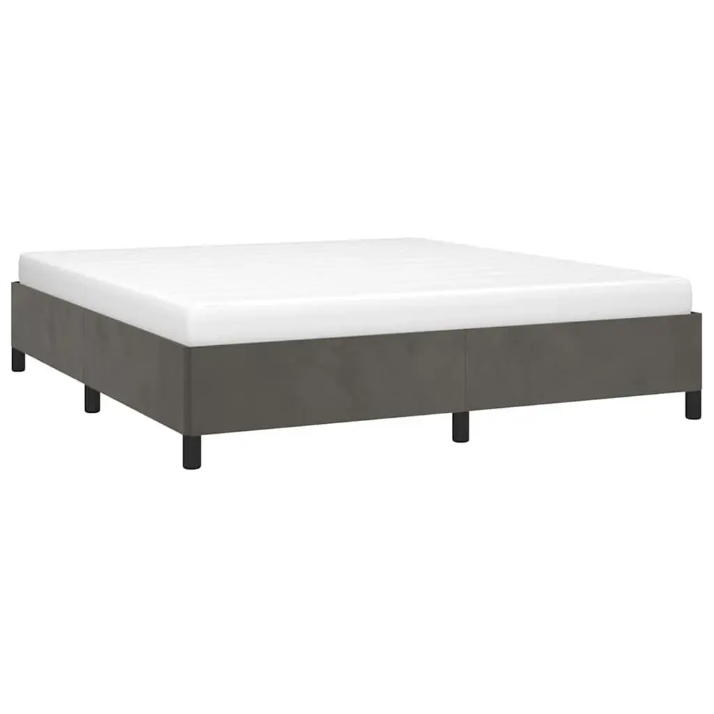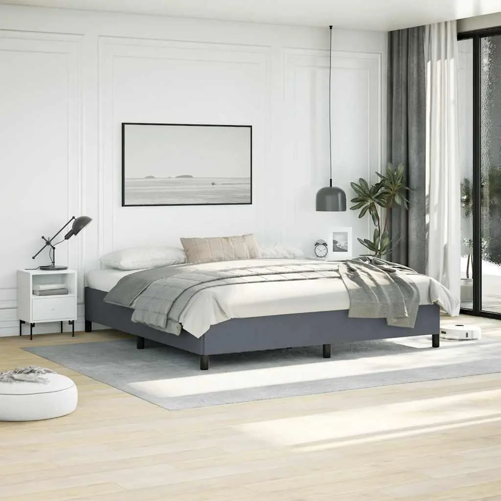 This stylish king bed frame in dark grey velvet mixes luxury with a clean look, creating a lovely focal point for your bedroom. Its plush upholstery goes well with different decor styles, boosting your space's aesthetic while promising a snug sleep environment. Stylish Upholstery: The bed frame is wrapped in premium velvet that's soft to touch, giving it a luxe feel. The dark grey color not only looks fab but fits in seamlessly with various bedroom styles.Robust Construction: Built from engineered wood, this bed frame offers strong support for your mattress over time. It's specifically designed for king-size mattresses, showing its sturdiness.Space-Friendly Design: Generous dimensions make this frame perfect for bigger bedrooms, offering plenty of sleeping space for you and your partner. Its rectangular shape allows it to fit nicely into different room layouts.Easy Assembly: Comes with a handy assembly manual, this frame is a doddle to put together. Just grab a screwdriver and a friend for a quick setup.Functional Aesthetic: The matte finish and rich texture of the velvet create a calm vibe in your bedroom. This frame nicely mixes style with practicality, ideal for everyday use.