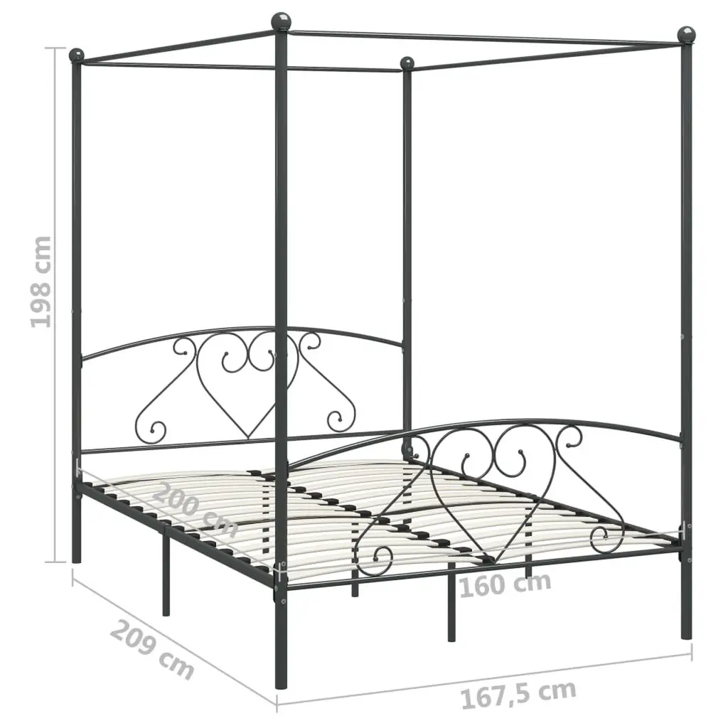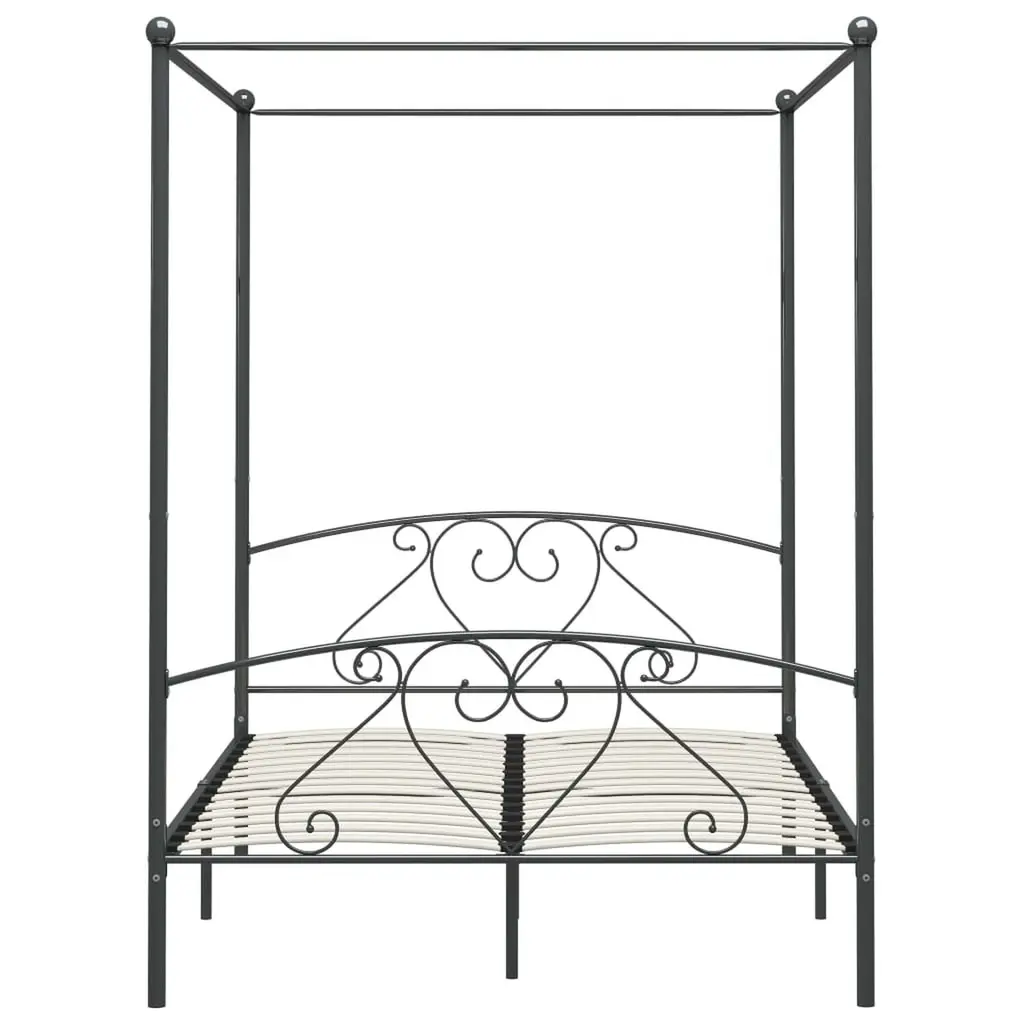 This Gray Metal Canopy Bed Frame has a modern vibe while giving you top comfort. Built to fit a standard mattress of 63 x 79 in, it really goes well with trendy bedroom styles thanks to its sleek metal design and minimalist look. Sturdy Construction: Made from tough metal, this canopy bed frame is built to handle regular use, offering a solid foundation. Its strong design can support a weight of up to 11 lbs around the top frame, giving you peace of mind.Sleek Design: The modern look features clean lines and a matte finish, enhancing any bedroom vibe. It suits both minimalist and contemporary styles, making it a flexible choice for different interiors.Easy Maintenance: The smooth surface doesn’t attract dust or stains, so keeping it clean is a breeze. A quick wipe with a damp cloth keeps it looking like new, letting you enjoy your space without fuss.Ample Space: Designed for two adults, its generous size of 63 x 79 in gives the perfect sleeping area. This bed frame is ideal for couples or anyone who likes a bit of room to stretch out at night.Thoughtful Features: The square legs provide stability, while the slatted base allows for mattress ventilation. The blend of function and style makes it a must-have in any bedroom.