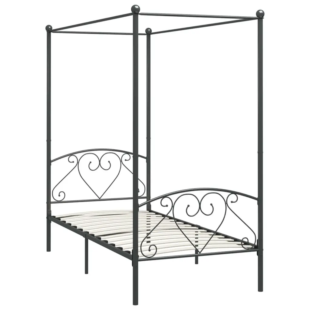 This Gray Metal Canopy Bed Frame is a stylish and sturdy solution for anyone looking for a modern sleeping arrangement. With its sleek lines and minimalistic design, it fits right into any bedroom decor, giving you both function and style, perfect for a blissful night's sleep. Durable Construction: Strong metal frame supports your nightly rest without skimping on stability or style.Modern Aesthetic: Smooth gray finish boosts the contemporary feel and matches different decors, making it a great pick for any room.Easy Maintenance: The elegant metal surface is practical for quick cleanup with just a damp cloth, keeping it looking sharp.Functional Design: The canopy frame helps you personalize with curtains for a cozy, private vibe in your bedroom.Space-Efficient Dimensions: With its single size of 35.4 x 78.7 in, this bed frame fits well in smaller bedrooms, making the most of your space with comfort.