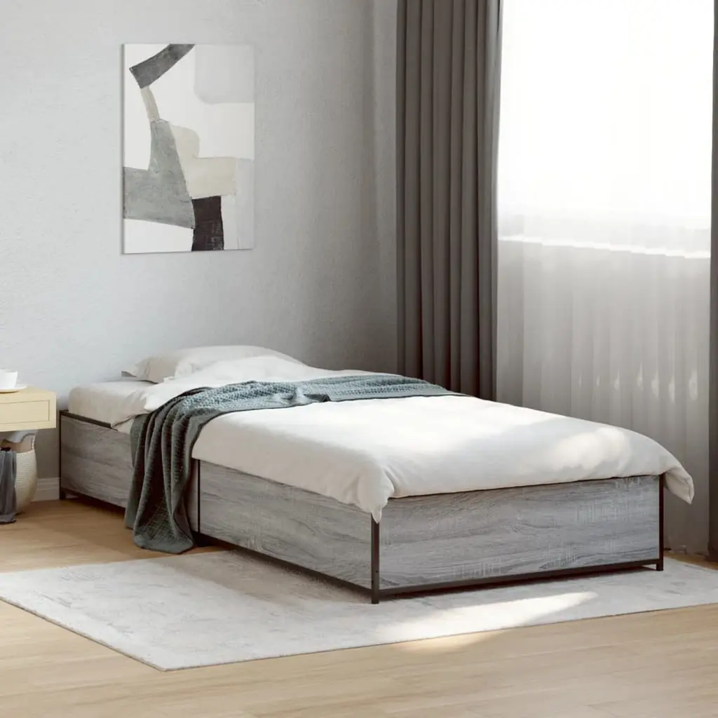 This single bed frame is made from engineered wood, merging strength and style for any bedroom or guest room. Its modern design and smooth gray Sonoma finish create a calming vibe, ensuring peaceful nights and a seamless addition to your interior. Durable Design: Made with engineered wood and metal for lasting stability and resistance to everyday wear.Modern Aesthetic: The matte gray finish and clean lines give it a fresh, contemporary look for any bedroom style.Compact Size: Fits snugly in smaller spaces, perfect for guest rooms or tight areas.Easy Assembly: Comes with all the bits and clear instructions, so two people can set it up quickly.Versatile Use: Works with single mattresses, giving solid support for sleeping, lounging, or reading in a comfy setting.