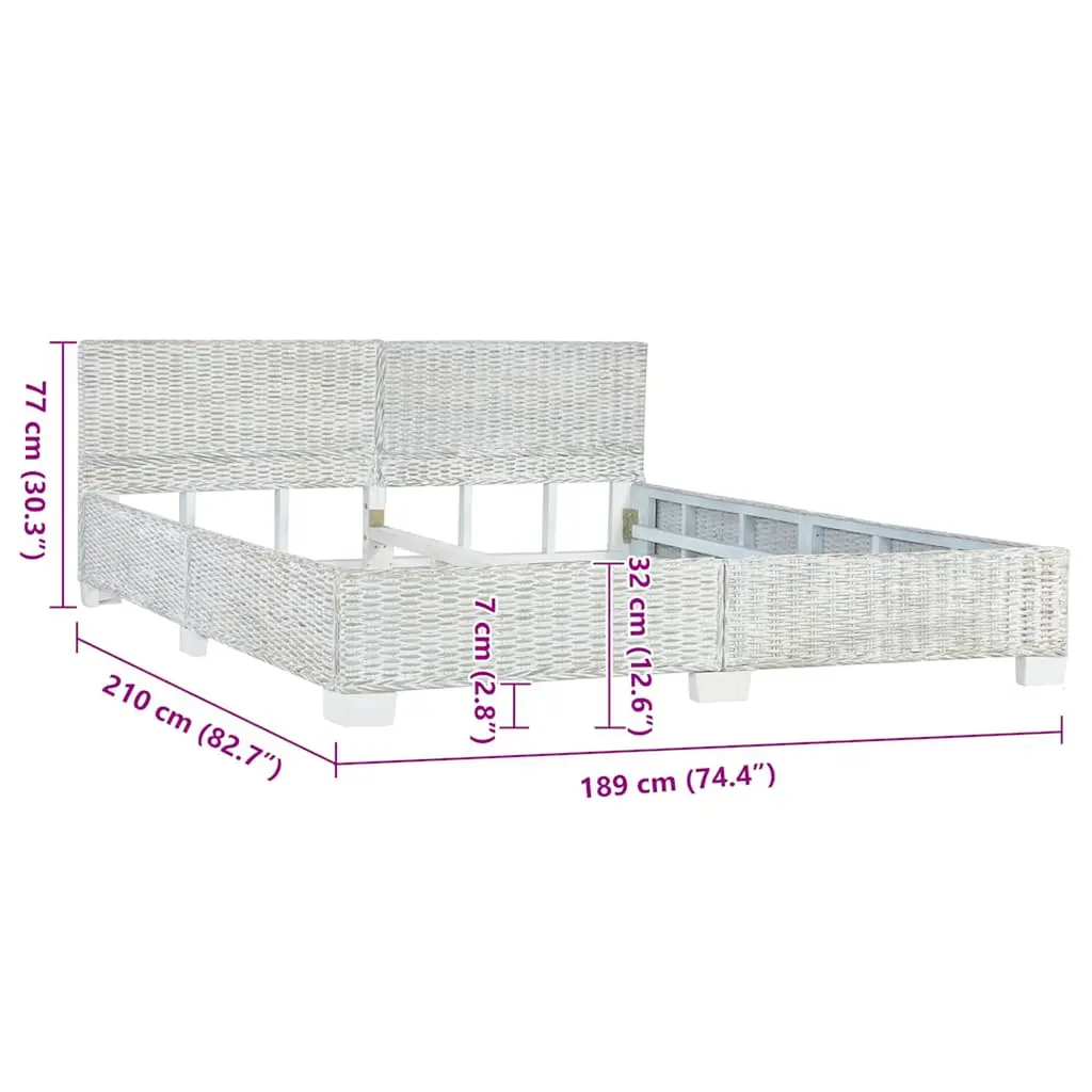 Vidaxl Bed Frame Grey Mahogany Wood, Mango Wood, Natural Rattan Super King