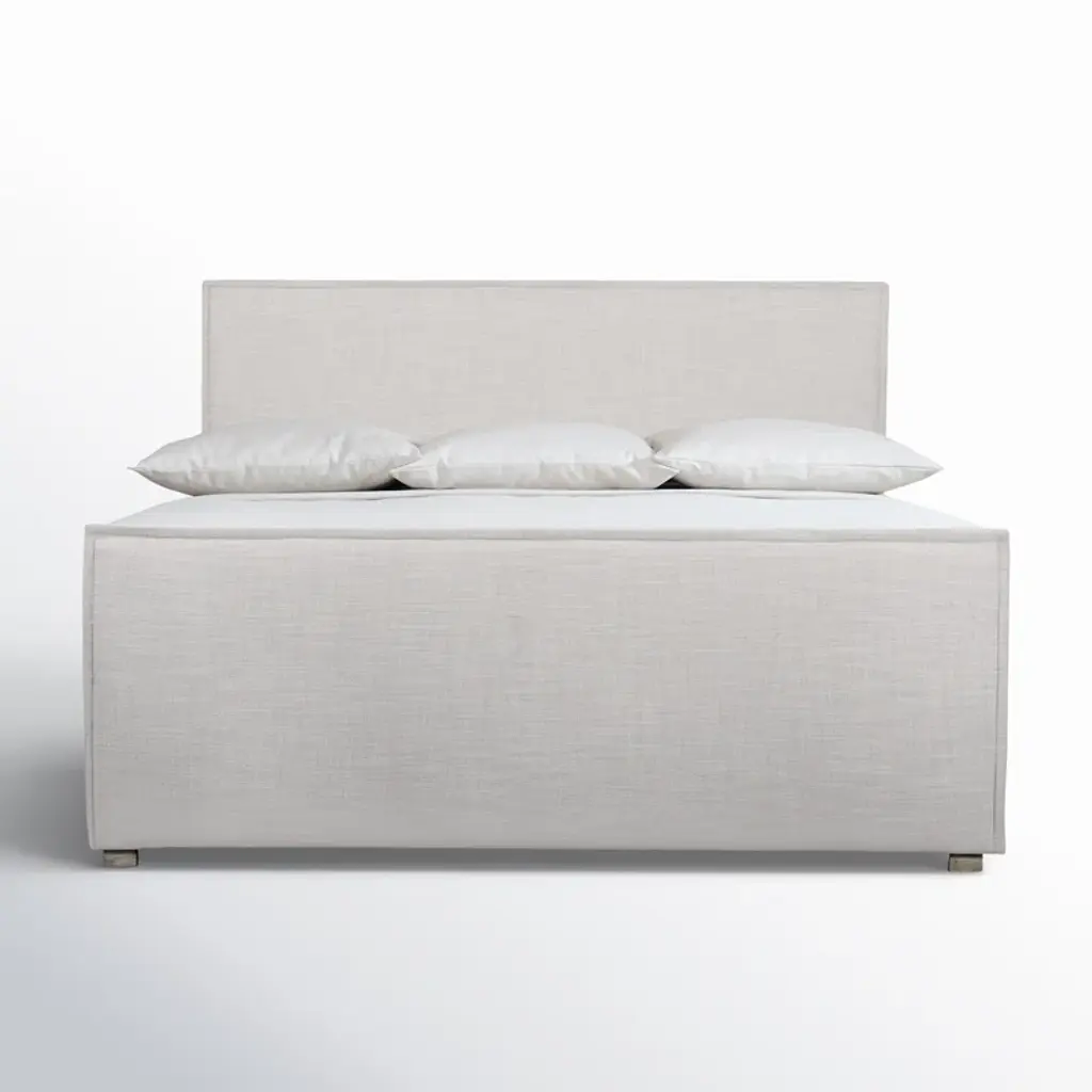 This bed frame blends modern style with practical functionality, aimed at enhancing any bedroom decor. Wrapped in luxurious light gray velvet, its attractive design creates a soft and inviting space perfect for restful nights and rejuvenating sleep. Breathable Material: The fabric allows airflow, providing comfort all night long.Sturdy Feet for Stability: Designed with solid legs to ensure safety and durability.Contemporary Modern Look: The sleek lines and minimalist style fit great into various interior designs.Soft Velvet Texture: Upholstered with soft velvet that enhances your sleeping experience.Easy to Assemble: Comes with everything you need for straightforward assembly.