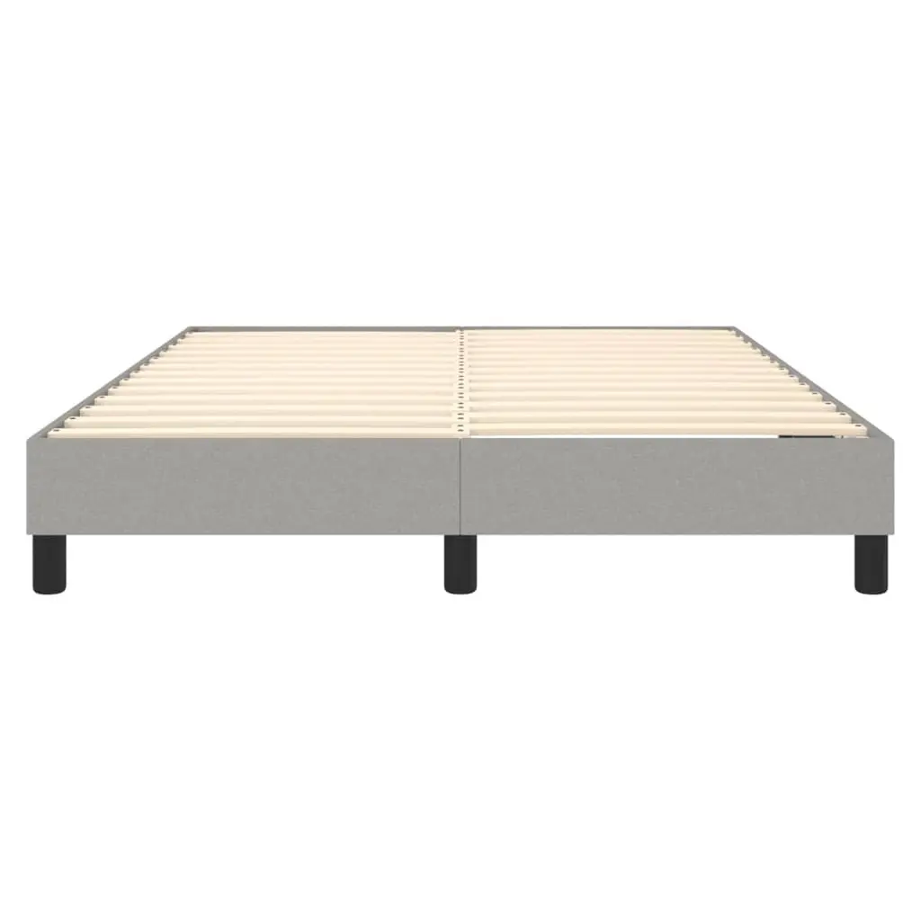 This queen fabric bed frame is a stylish and modern addition to any bedroom, focusing on comfort and durability. The light grey upholstery goes well with various styles, making it a flexible choice for anyone wanting to upgrade their sleeping space with a modern vibe. Durable Material: Built from robust plywood and engineered wood, this bed frame is made to last, ensuring a solid base for a good night's sleep.Textured Finish: The unique textured surface adds character and interest, making this bed frame not only practical but also a lovely focal point in your bedroom.Spacious Design: With room for two adults, this queen bed frame promotes plenty of sleeping space for added comfort.Versatile Color: The light grey color blends in smoothly with any bedroom scheme, providing a chic backdrop for your bedding and decor.Easy Maintenance: A quick dust with a dry cloth keeps this elegant piece looking fresh, making it a practical choice for any home.