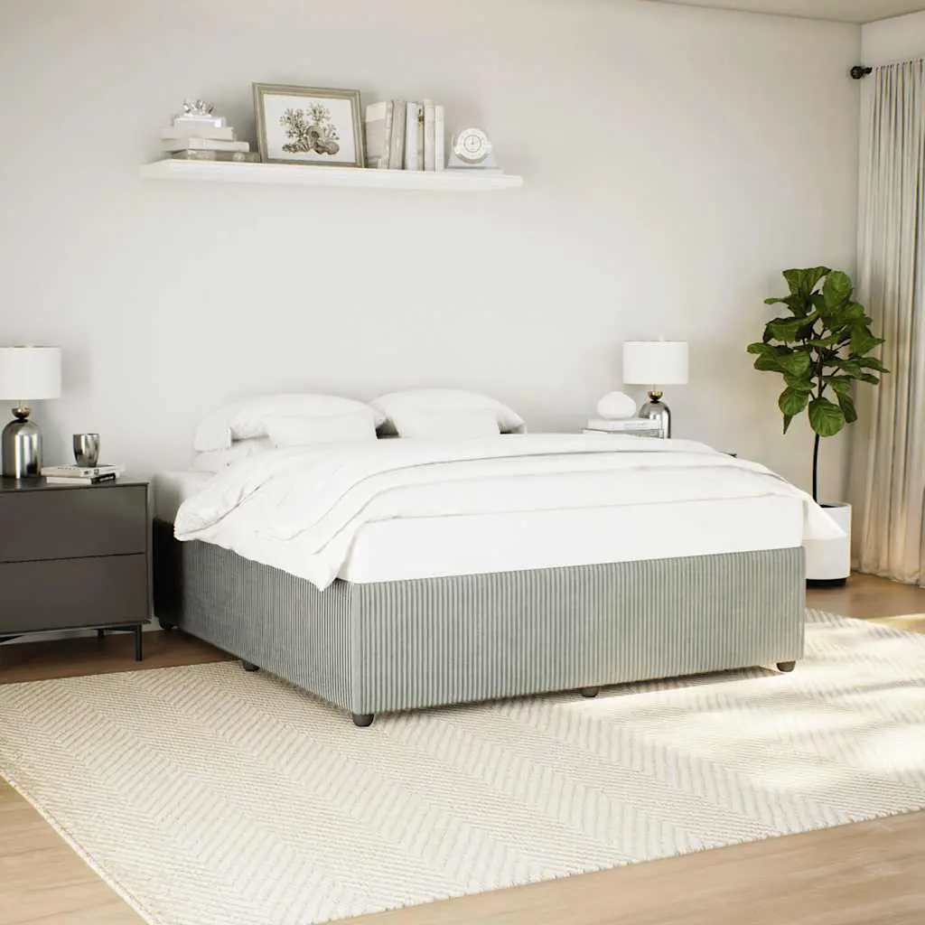 This King Size Velvet Bed Frame combines comfort and style for a great night's sleep. Made from high-quality materials and dressed in a chic light grey finish, it effortlessly enhances the look of any modern bedroom while providing the support you need for restful slumbers. Breathable velvet seating boosts airflow for even more comfort. Modern design gives it clean lines for a stylish touch. Sturdy solid pine legs keep it solid and secure. Generously sized for two adults to chill comfortably. Easy care just means a quick vacuum and a wipe with a damp cloth.