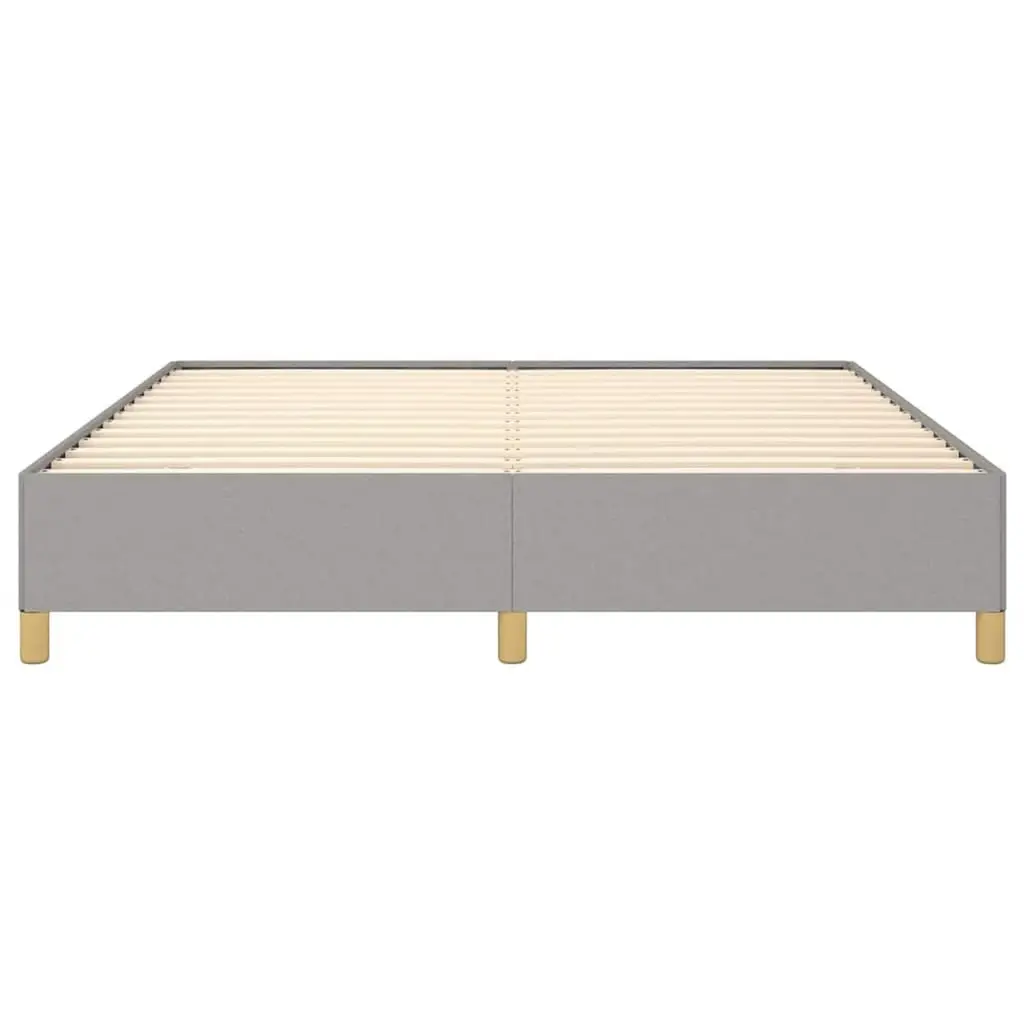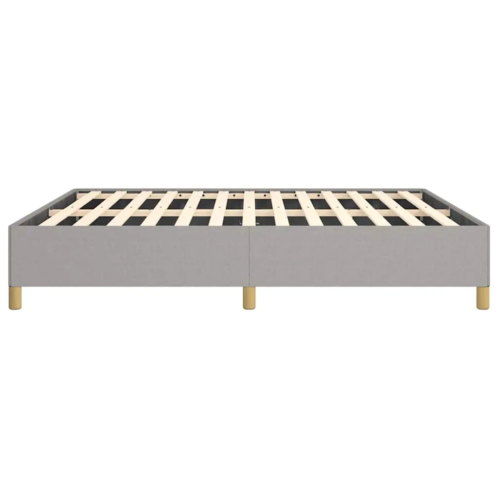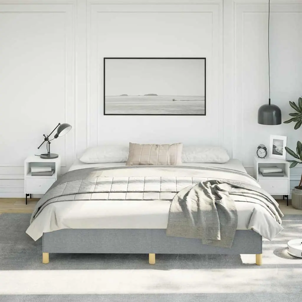 This modern king bed frame is beautifully covered in light grey fabric, making it an elegant yet soft focal point for any adult bedroom. With its headboard-free design, it offers a great chance for personalization, letting you add decorative pillows or wall art to give it your unique touch. Customization Potential: The headboard-free design lets you create a unique look that reflects your style and enhances your room's vibe.Elegant Look: The light grey fabric adds a sophisticated touch, creating a serene atmosphere perfect for unwinding. It fits seamlessly into modern bedroom decor, making it a lovely addition to your furnishings.Durable Materials: Made from high-quality engineered wood and breathable fabric, this bed frame is designed to handle daily use while ensuring comfort for a restful night's sleep.Simple Assembly: All you need is a screwdriver and two people for a straightforward setup without any tricky tools or confusing instructions.Roomy Dimensions: Measuring 76 in wide and 80 in long, this frame comfortably fits standard king mattresses, supported by reinforced legs for added stability.