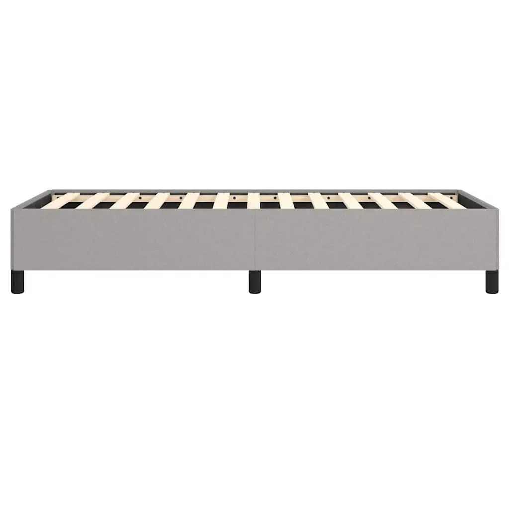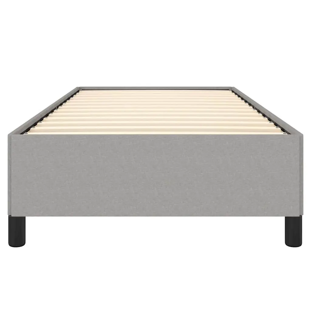 This light grey twin fabric bed frame nails the balance between style and practicality, perfect for modern bedrooms that care about comfort. The gentle light grey shade makes every room feel relaxed while its breathable polyester keeps you comfy at night. Breathable Fabric: The breathable polyester helps keep the air moving, keeping you cool and comfy all night long. It boosts your sleep quality by preventing overheating and helps create a healthier sleep atmosphere.Sturdy Construction: Made with tough engineered wood and plywood, this bed frame is built to last. Its solid structure promises stability, so it’ll be a reliable part of your bedroom furniture for ages.Elegant Aesthetic: With its soft light grey and modern design, this bed frame adds a chic touch to any bedroom. It fits right in with contemporary and minimal styles, making it a flexible pick for any home.Compact Size: The twin size makes this bed frame great for smaller bedrooms or guest spots, making the most of the space without skimping on style or comfort. It’s just the thing for kids and adults seeking a sleek, functional sleep space.Easy Assembly: The simple setup means you can put your bed frame together in a snap. You need two people and a screwdriver, so you'll be enjoying your new bed in no time.