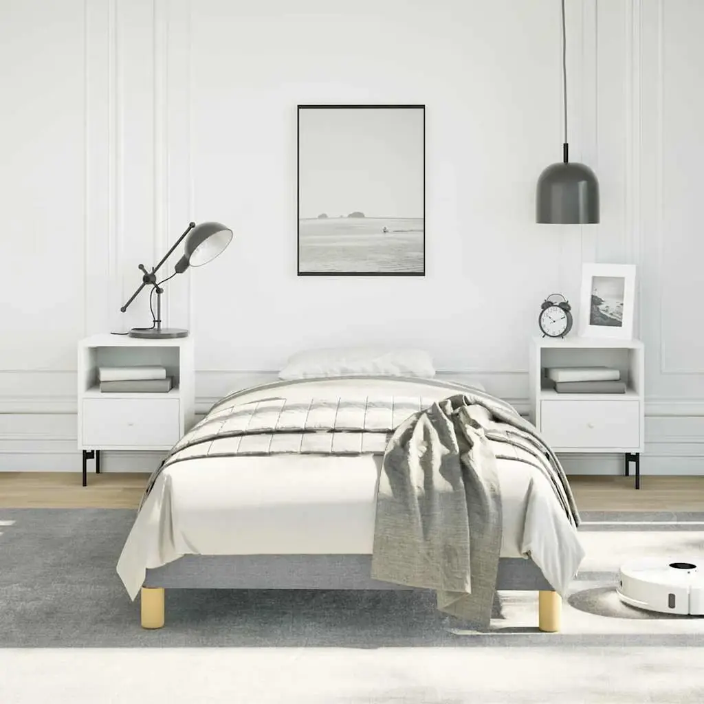 Vidaxl Bed Frame Light Grey Polyester, Plywood, Engineered Wood Twin Xl