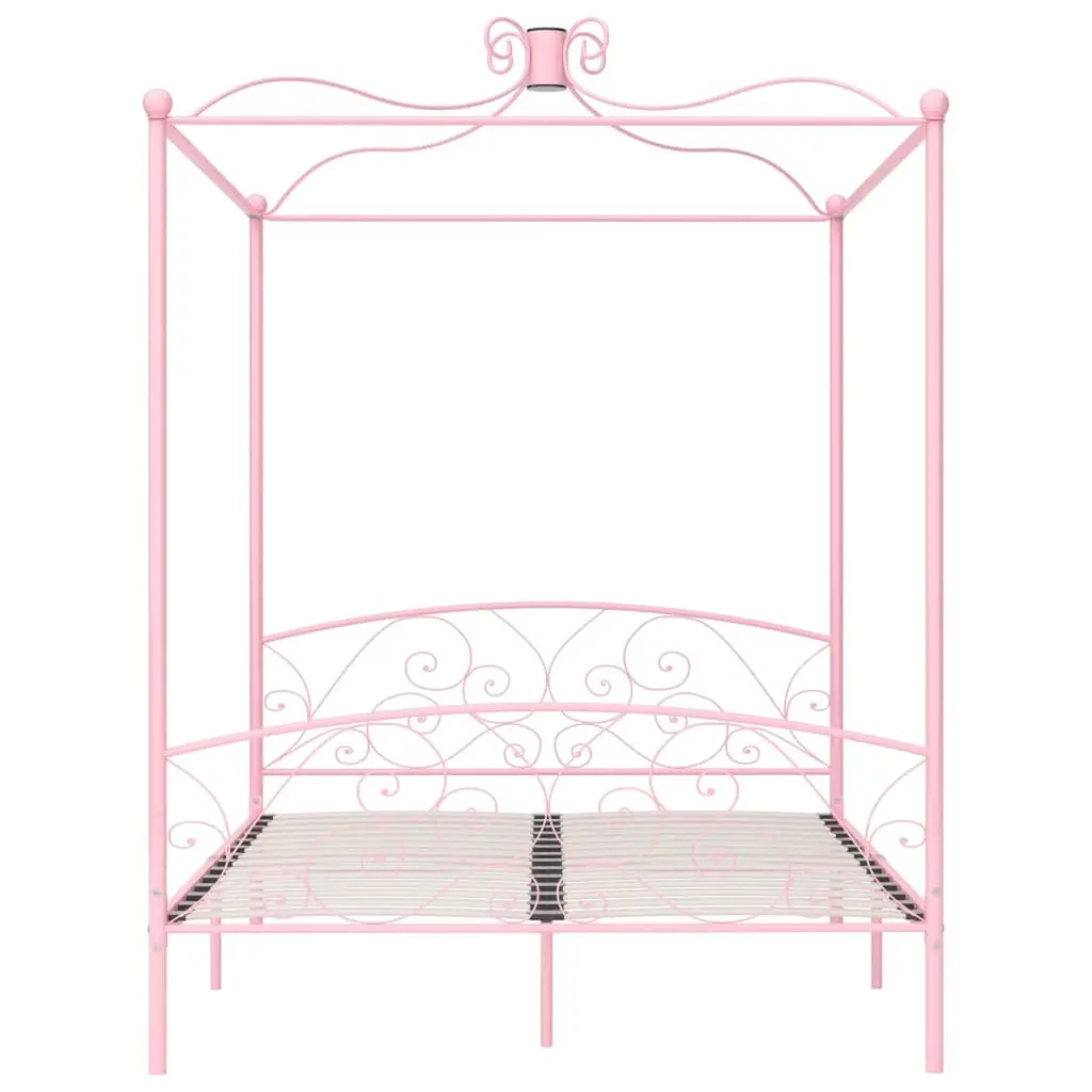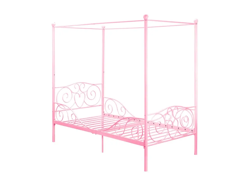 This Pink Canopy Bed Frame mixes timeless elegance with a modern touch, making it a stunning centerpiece for any bedroom. It's designed for adults and sports a lovely pink finish that brightens up your space while giving you a comfy and inviting sleeping area for some quality relaxation. Elegant Aesthetics: The classic design with decorative inlays brings a touch of beauty, perfect for crafting a warm and welcoming vibe. This eye-catching feature ramps up the visual charm for a stylish bedroom setup. Solid Construction: Made from sturdy metal and plywood, this bed frame is built to last, ensuring stability and support through its use. It can comfortably hold up to two adults, making it a great choice for couples. Easy Assembly: Clear instructions mean you can quickly set up your frame with just a few tools. Two people can easily put it together. Functional Design: The slatted base boosts mattress life and comfort. Plus, this bed frame works well with hanging canopies and mosquito nets, adding practical perks for your comfort. Maintenance: Its smooth surface means the metal frame is a breeze to clean and keep tidy, so your bed stays fresh with little effort.