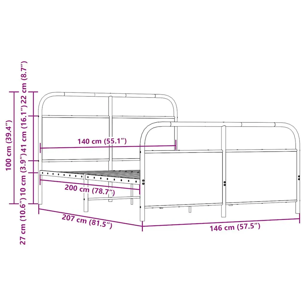 This Smoked Oak Metal Bed Frame offers a classy yet strong sleeping solution that's just right for any modern bedroom. The mix of engineered wood and metal gives it a stylish look while ensuring solid support for your peaceful nights. Elegant Smoked Finish: The smoked oak color adds a bit of class, fitting in with all sorts of bedroom styles. This timeless finish not only makes it look good but also suits many interior designs.Strong Build: Made from quality engineered wood and metal, this bed frame is guaranteed to last. It can handle daily use without losing out on comfort or support.Functional Headboard and Footboard: With a designed headboard and footboard, this bed frame offers excellent support whether you’re reading in bed or enjoying a cup of coffee. Plus, it gives it a nice touch that lifts the overall vibe.Generous Size: Made to comfortably fit two adults, with dimensions of 55.1 x 78.7 in, it offers plenty of room for a good night’s sleep. This size is perfect for most bedrooms, making it a great addition without crowding the space.Easy Maintenance: This bed frame’s finish needs little attention and can be wiped clean with a soft cloth. Steering clear of harsh chemicals helps it last longer and keeps it looking sharp, making it great for busy lives.