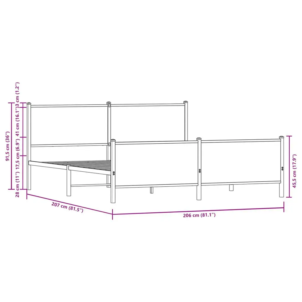 Vidaxl Bed Frame Smoked Oak Steel, Engineered Wood 78.7 X 78.7 In