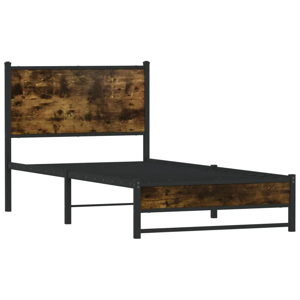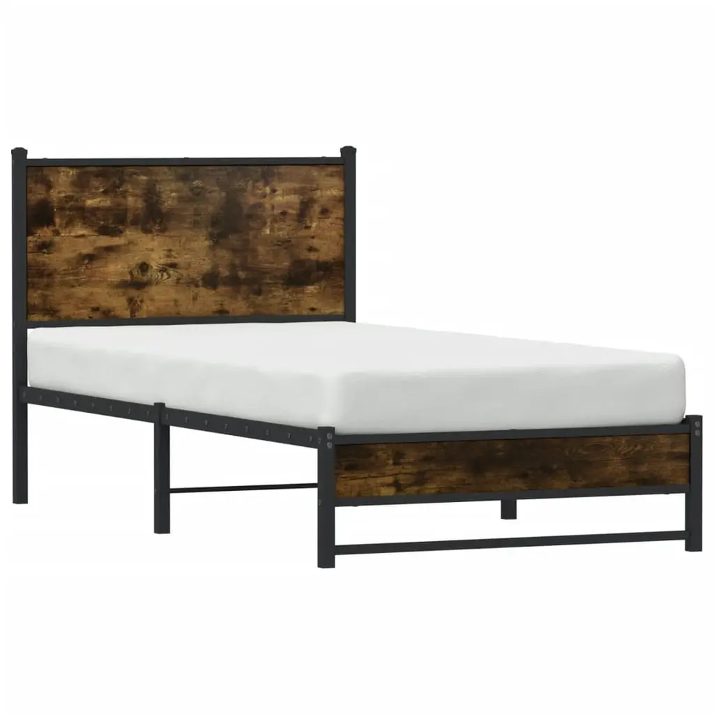 Vidaxl Bed Frame Smoked Oak Steel, Engineered Wood Twin Bed Frame