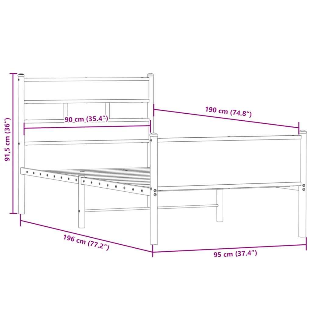 Vidaxl Bed Frame Smoked Oak Steel, Engineered Wood Twin Bed Frame