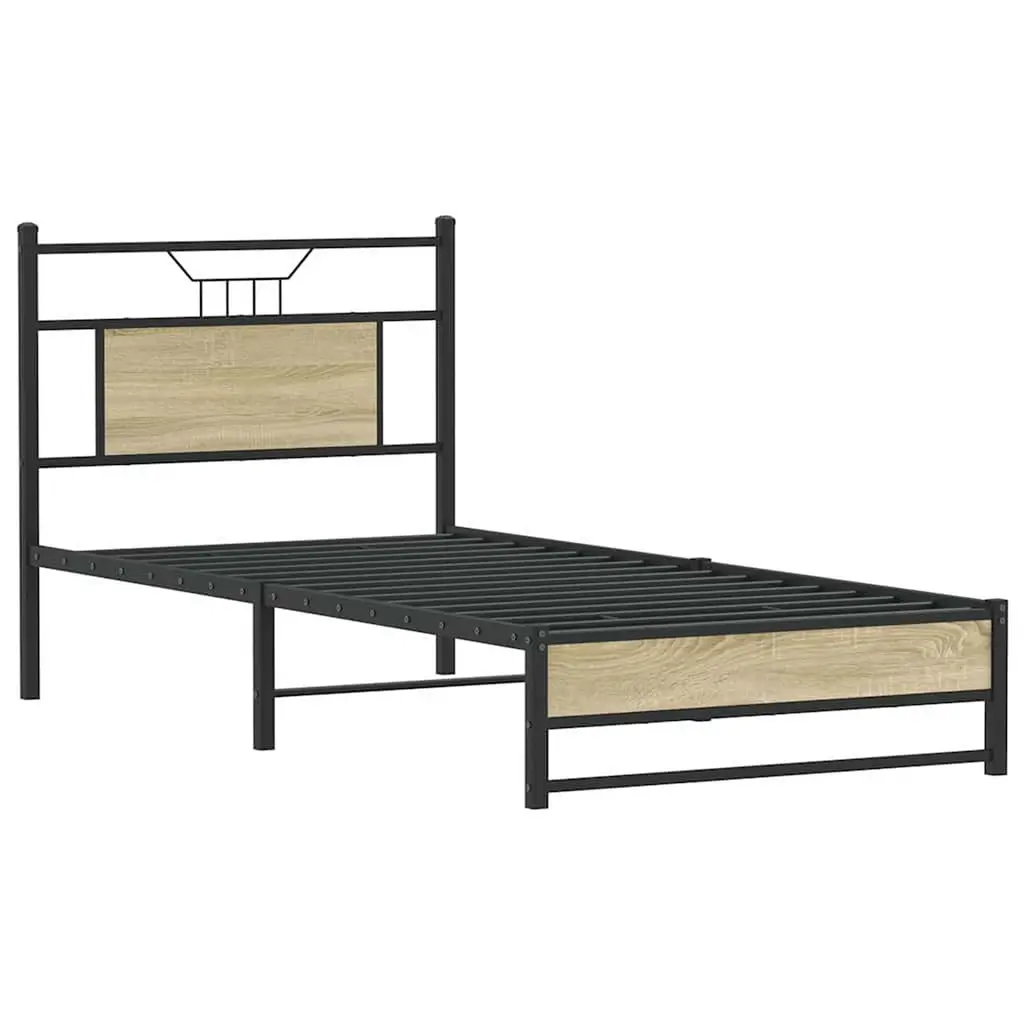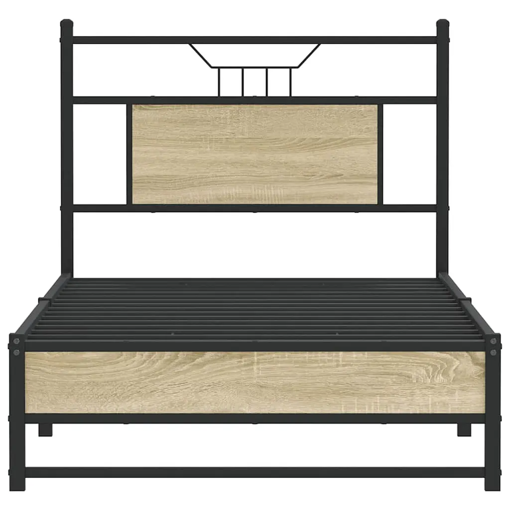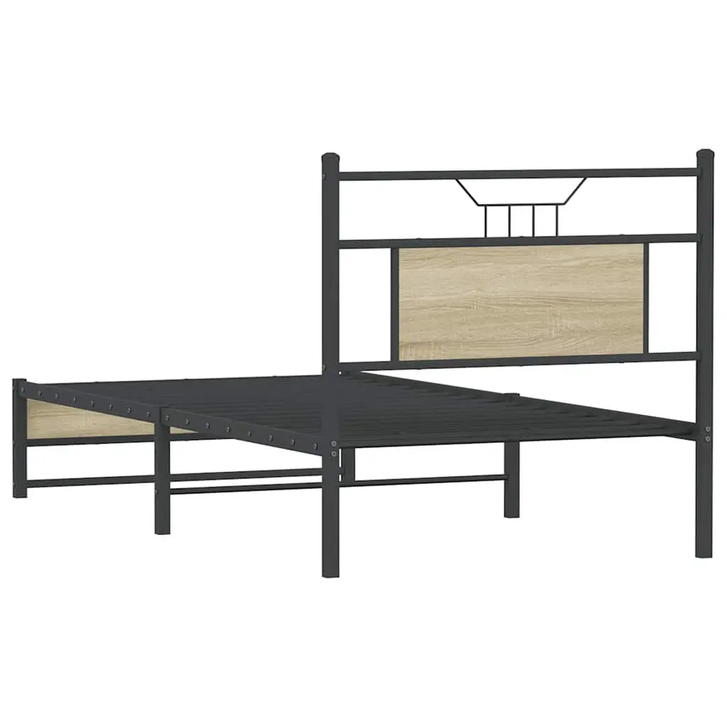 Vidaxl Bed Frame Sonoma Oak Engineered Wood And Steel Single Bed Frame