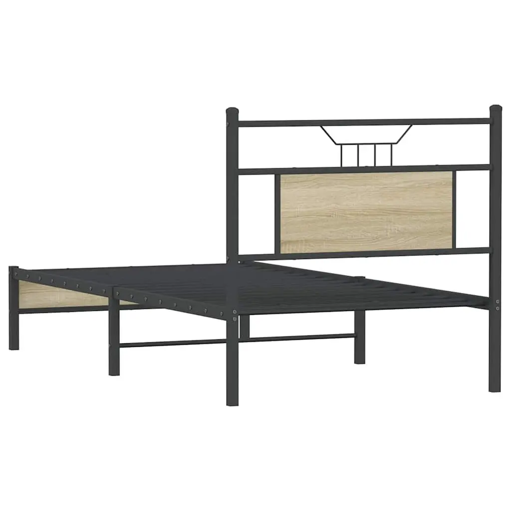 Vidaxl Bed Frame Sonoma Oak Engineered Wood, Steel Twin Bed Frame