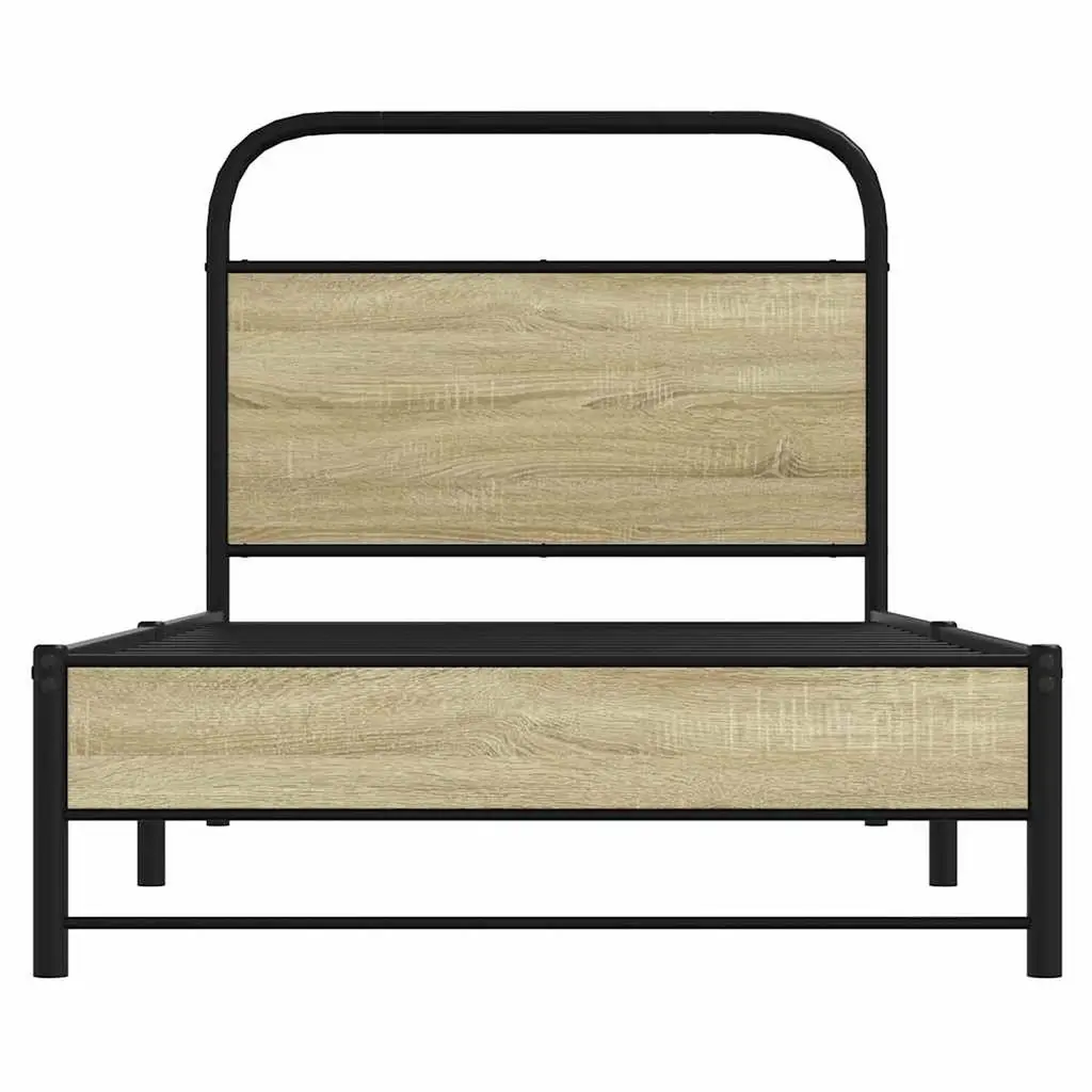 Vidaxl Bed Frame Sonoma Oak Steel, Engineered Wood 31.5 X 79 In Durable