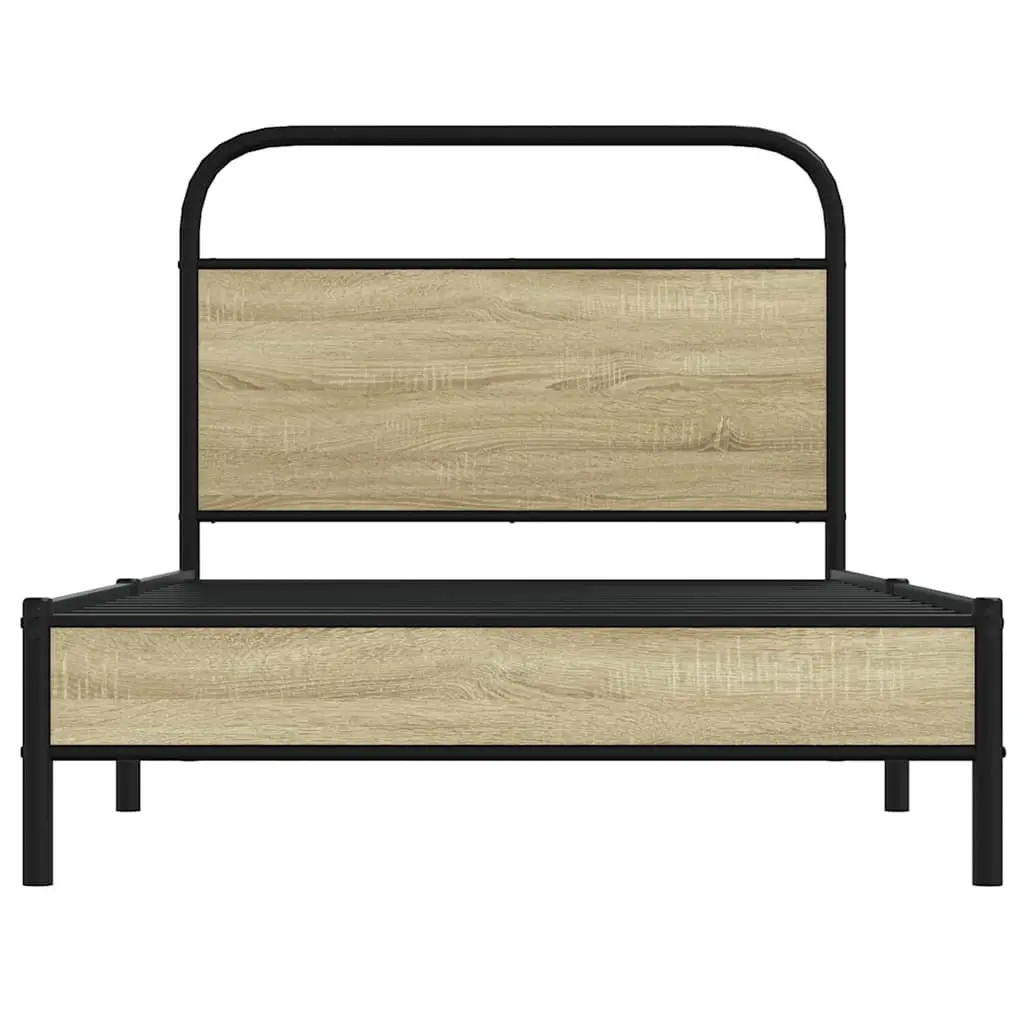 Vidaxl Bed Frame Sonoma Oak Steel, Engineered Wood 42.1x79.9 In