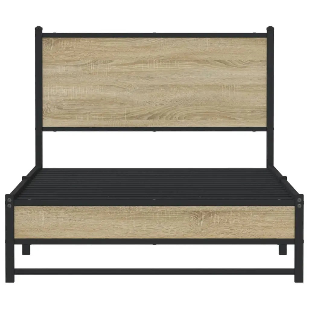 Vidaxl Bed Frame Sonoma Oak Steel, Engineered Wood Single Bed Frame