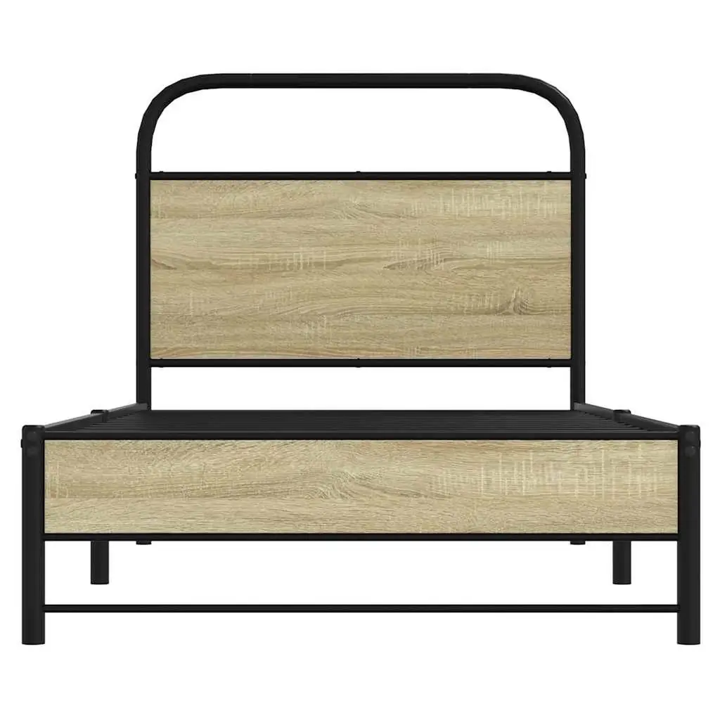 Vidaxl Bed Frame Sonoma Oak Steel, Engineered Wood Small Twin Bed Frame