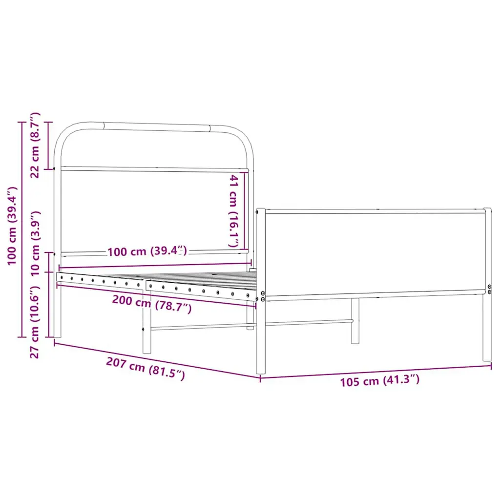 Vidaxl Bed Frame Sonoma Oak Steel, Engineered Wood Twin Bed Frame