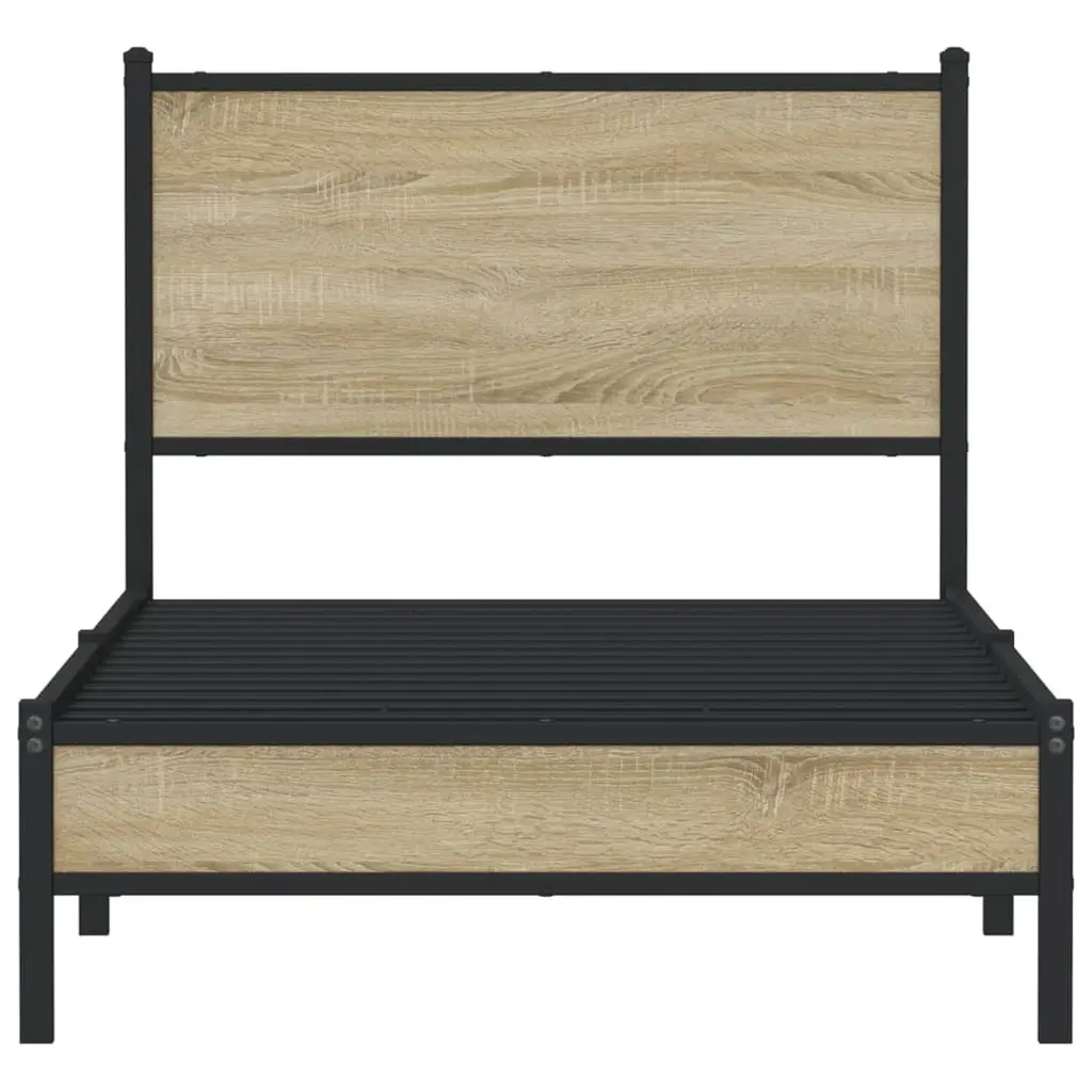 Vidaxl Bed Frame Sonoma Oak Steel, Engineered Wood Twin Bed Frame
