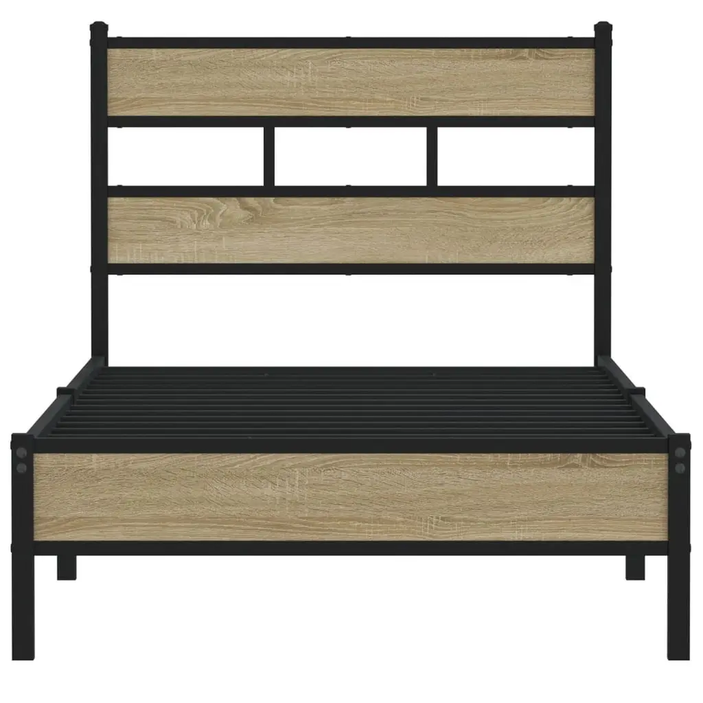 Vidaxl Bed Frame Sonoma Oak Steel Twin Bed Frame Rectangular Modern
