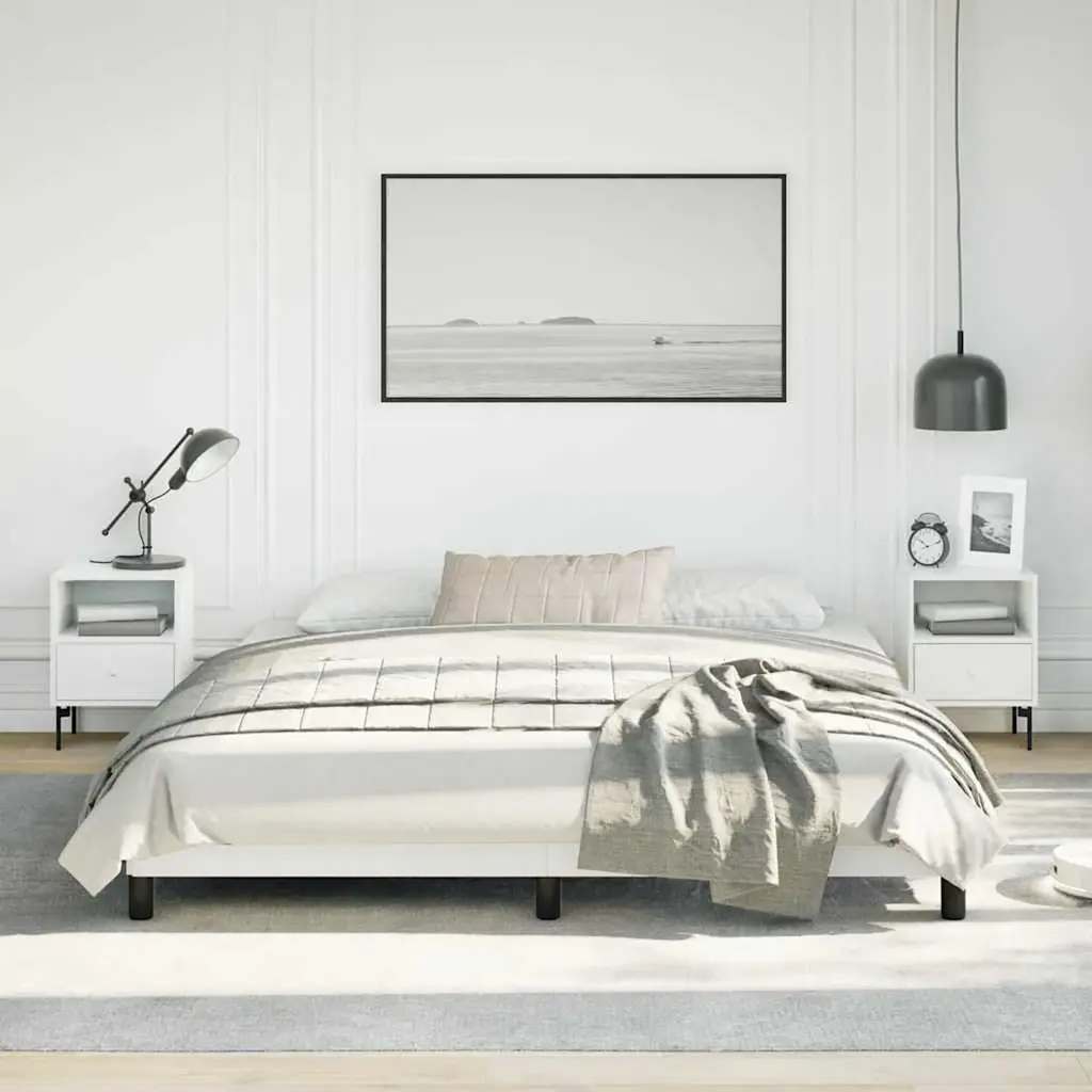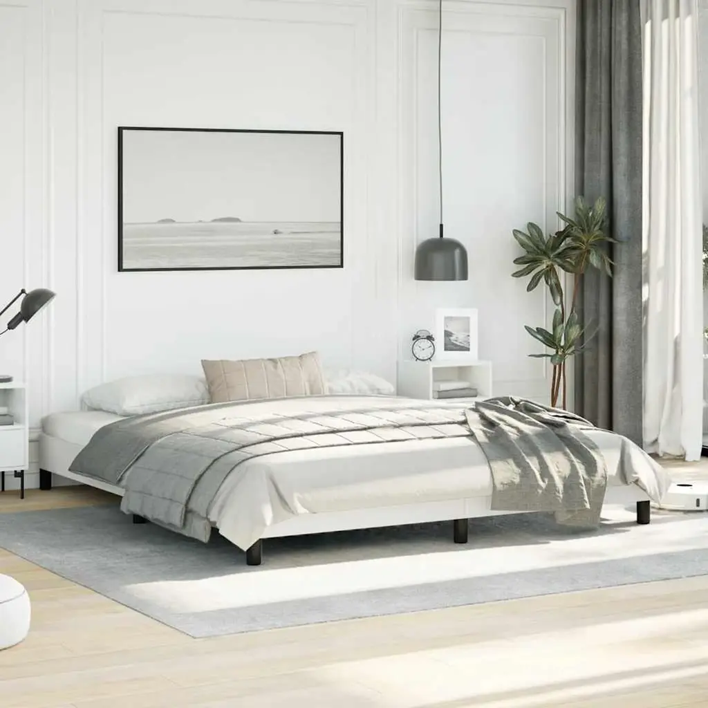 This California King Bed Frame mixes functionality with modern style, featuring a sleek white design that enhances any bedroom. It’s a stunning centerpiece with a cool matte finish, ensuring it fits nicely into your home while offering comfort and durability for great sleep. Stylish Design: The bed frame boasts modern aesthetics characterized by clean lines, providing a contemporary feel that enhances any bedroom space. Its elegant appearance makes it suitable for both minimalistic and sophisticated decors, creating a tranquil and inviting atmosphere.High-Quality Materials: Crafted from faux leather and engineered wood, this bed frame not only looks great but is built to last. The upholstery is abrasion-resistant and easy to maintain, ensuring it retains its impressive appearance through years of use.Spacious Dimensions: Designed specifically to accommodate a California King mattress, the frame's generous dimensions offer ample space for couples or those who love to stretch out while sleeping. Enjoy the luxury of extra room and comfort without sacrificing style.Easy Maintenance: With a smooth, wipeable surface, it simplifies cleaning and upkeep. Just wipe with a dry cloth to remove dust or debris, keeping it looking fresh with minimal effort—perfect for a busy lifestyle.Durable Construction: The bed frame features solid square legs made from engineered wood, ensuring stability and support you can rely on. Its construction is designed for long-term use, making it a worthwhile investment for your bedroom.
