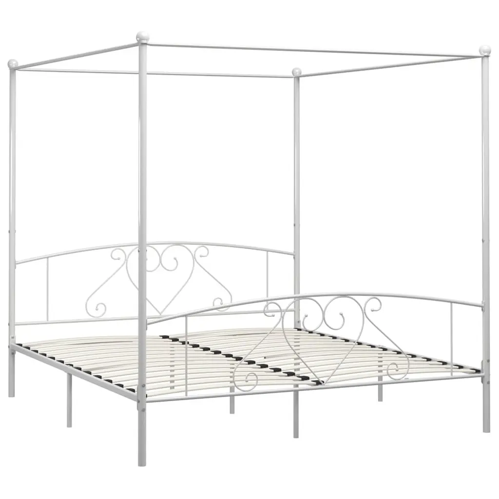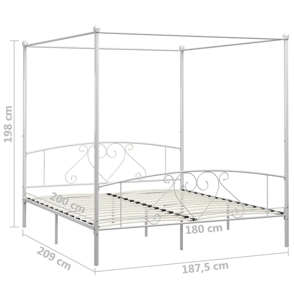 This White Metal Canopy Bed Frame adds a touch of sophistication to modern bedrooms, blending durability with an elegant design. Made from high-quality metal, its smooth finish gives it a lovely sheen, while the classic canopy design boosts its charm, making it a sweet focal point for your personal space. Sturdy Metal Frame: Built to last, this bed frame has a solid metal build that gives you great support for good sleeps. The slatted base allows for brilliant mattress airflow, stopping moisture and helping your mattress last longer.Elegant Canopy Design: The lovely canopy lets you hang soft fabrics, boosting the bed’s look and creating a cozy feel. This not only adds to the style but lets you add your own touch, making it fit with loads of décor styles.Convenient Dimensions: Measuring 70.9 in wide and 78.7 in long, this bed frame is spacious enough for two adults to chill comfortably, making it just right for restful nights. Its generous sizing is a sweet escape for couples who want extra comfort in their bedroom.Easy to Assemble: The bed frame comes with straightforward assembly instructions that don’t need many tools. Even if you’re not great at DIY, you’ll find it easy to set this up and add it to your home with zero fuss.Versatile Use: Great for all sorts of places, this canopy bed frame will upgrade adult bedrooms, guest rooms, or even tiny studio flats, showing off a mix of style and practicality. It pairs well with different bedding looks, from modern simplicity to classic charm, lifting the overall vibe of the room.