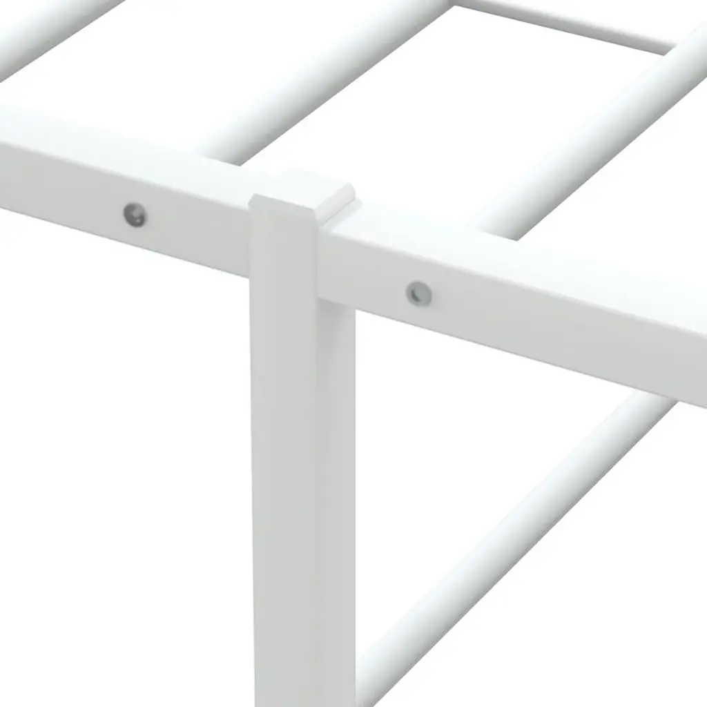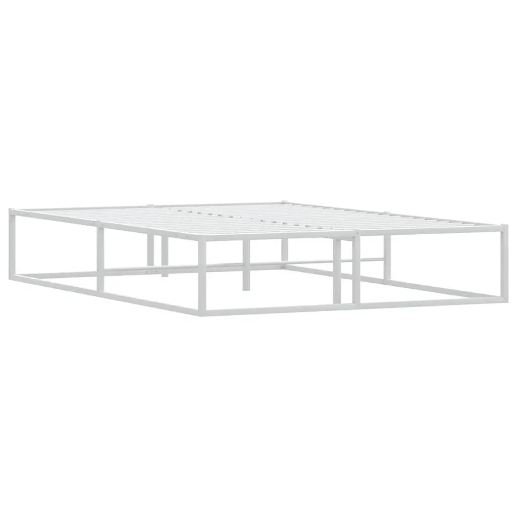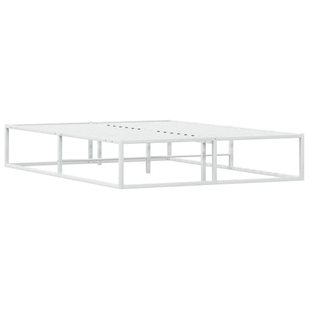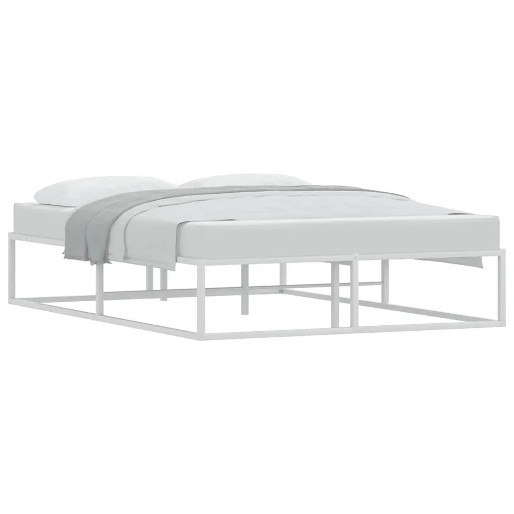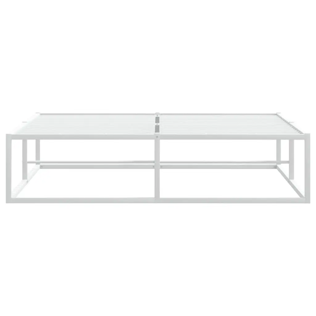 Vidaxl Bed Frame White Powder-Coated Metal Double Bed Frame