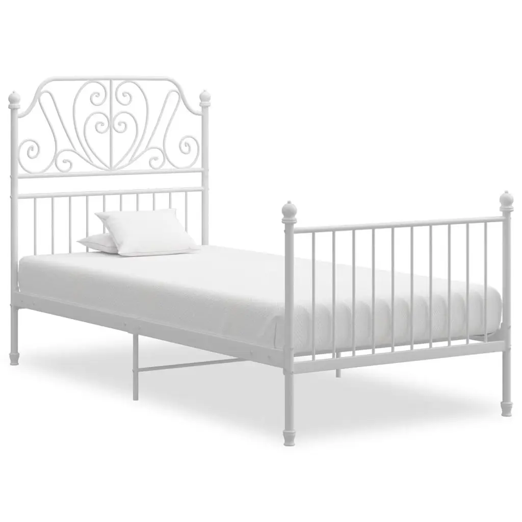 Vidaxl Bed Frame White Powder-Coated Metal Double Durable Bed Frame