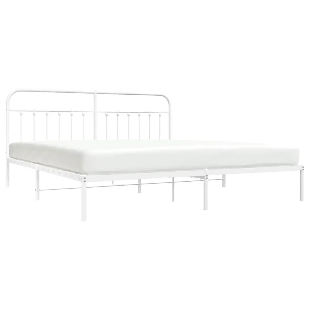 Vidaxl Bed Frame White Powder-Coated Steel 76 In X 80 In Industrial