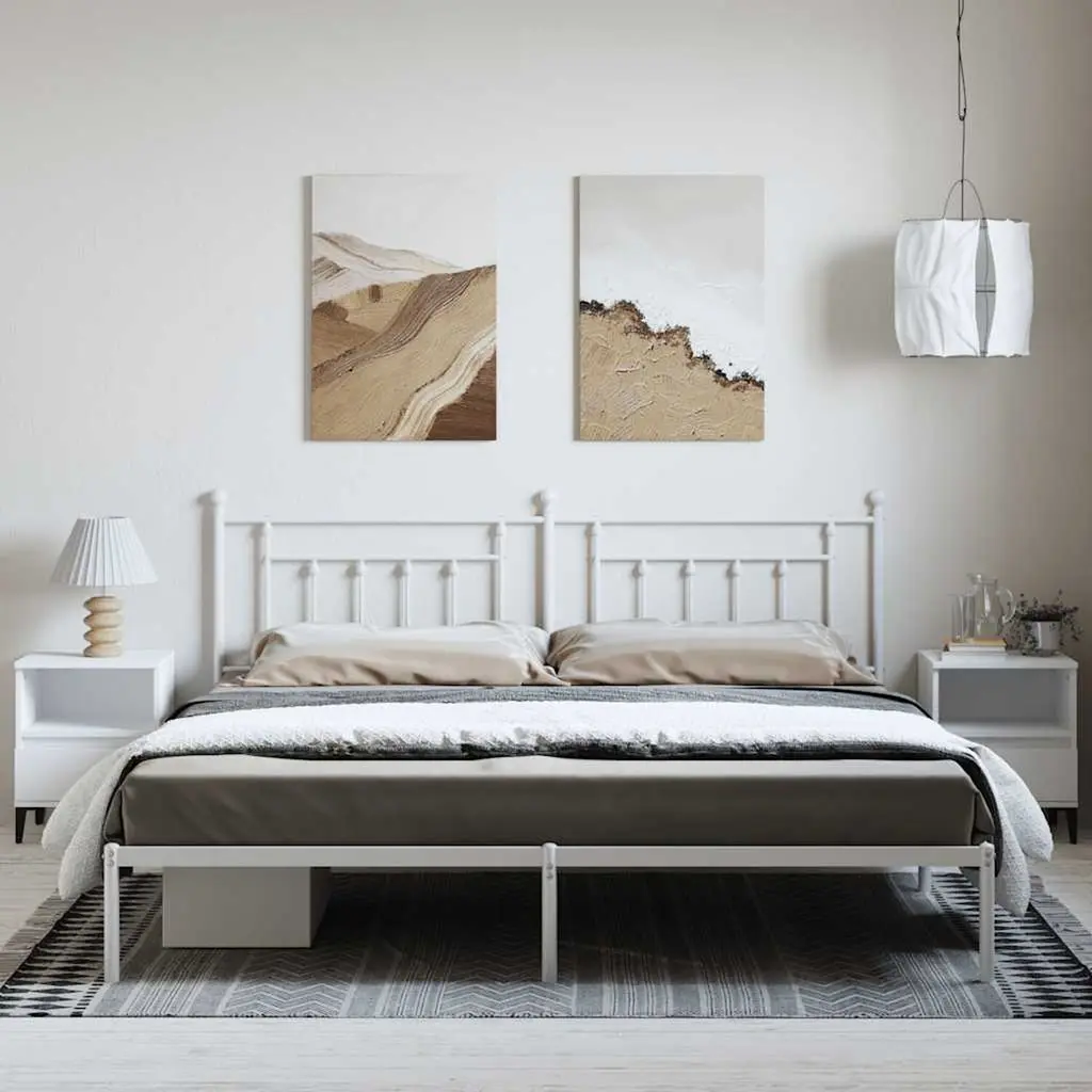 This White Metal Bed Frame with Headboard combines style and practicality, making it a lovely centerpiece for any bedroom. With its strong powder-coated steel frame, it captures that industrial vibe while being durable enough for everyday use, giving you comfort and support for restful nights. Ample Storage: With its generous design, this bed frame offers loads of storage options, perfect for keeping your essentials tidy and easy to get to. Durable Build: Made from high-quality powder-coated steel, this bed frame is made to last, resisting wear and tear for reliable use. Industrial Design: The bed frame has a strong, factory-style look, perfect for those wanting to add a trendy, urban vibe to their bedroom. Easy Maintenance: Cleaning is simple; just wipe it down with a damp cloth to keep it looking good. Versatile Usage: Perfect for various bedroom settings, this bed frame easily accommodates up to two people for a restful sleep or just lounging around.