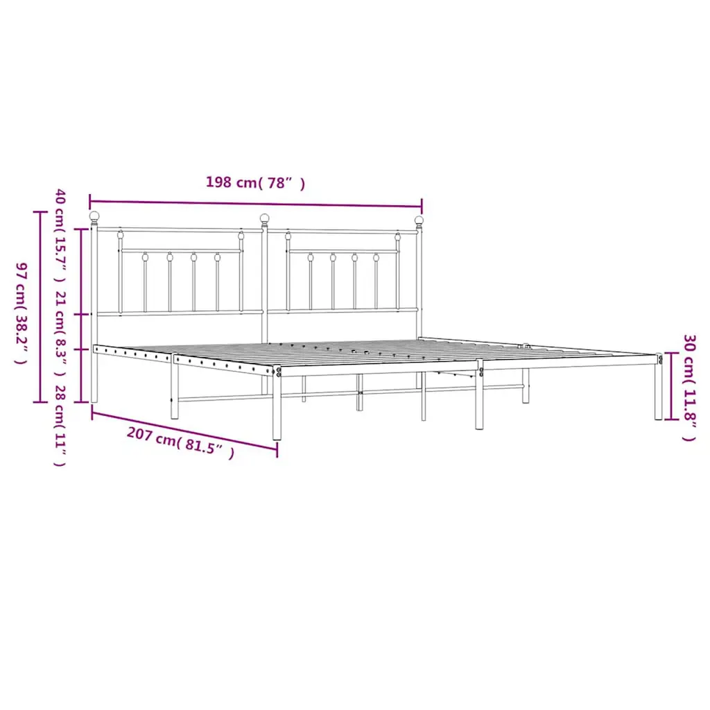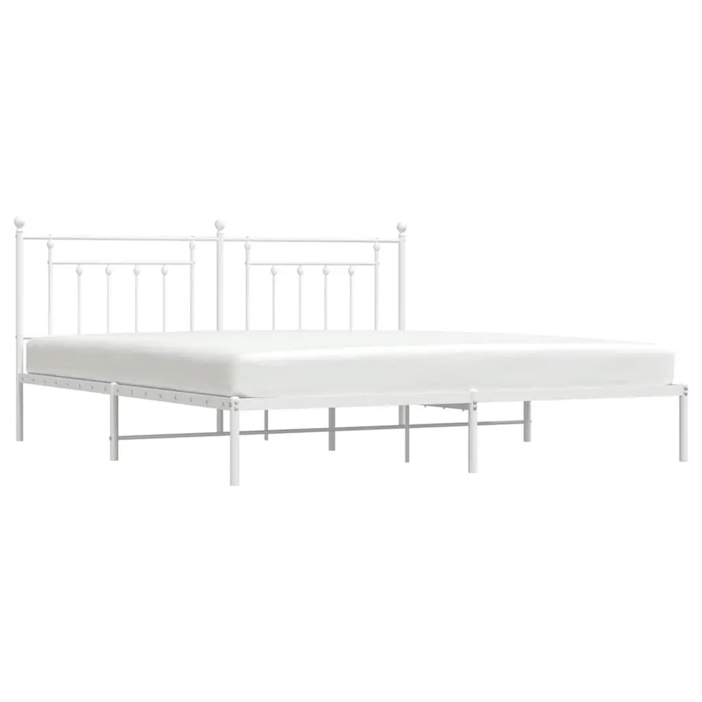 Vidaxl Bed Frame White Powder-Coated Steel 76 X 80 In Bed Frame