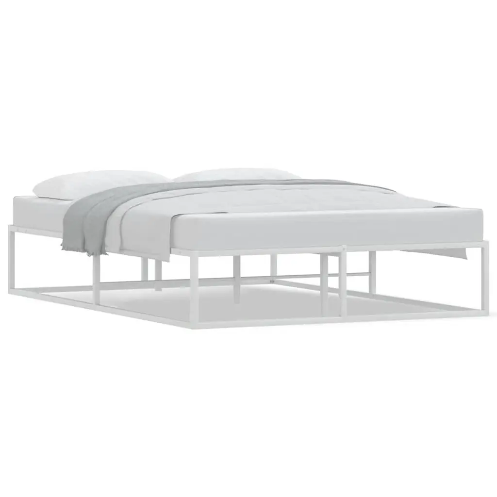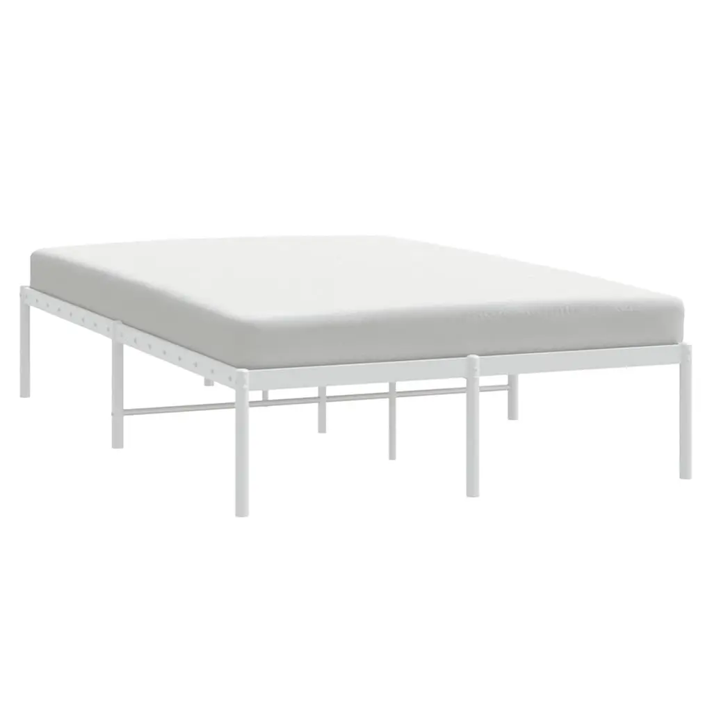 Vidaxl Bed Frame White Powder-Coated Steel Full Bed Frame Rectangular
