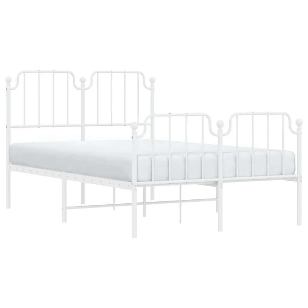Vidaxl Bed Frame White Powder-Coated Steel Full Bed Frame Rectangular