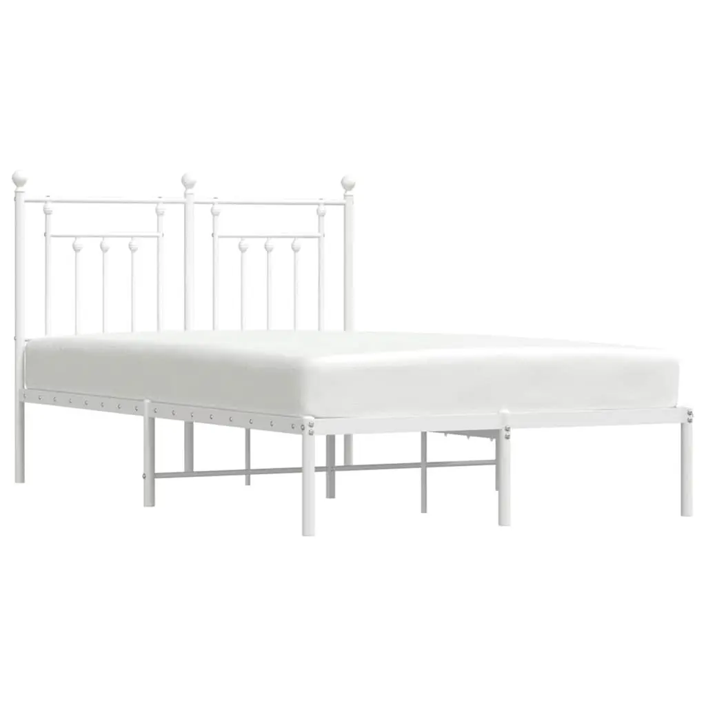 Vidaxl Bed Frame White Powder-Coated Steel Full Bed Frame Rectangular