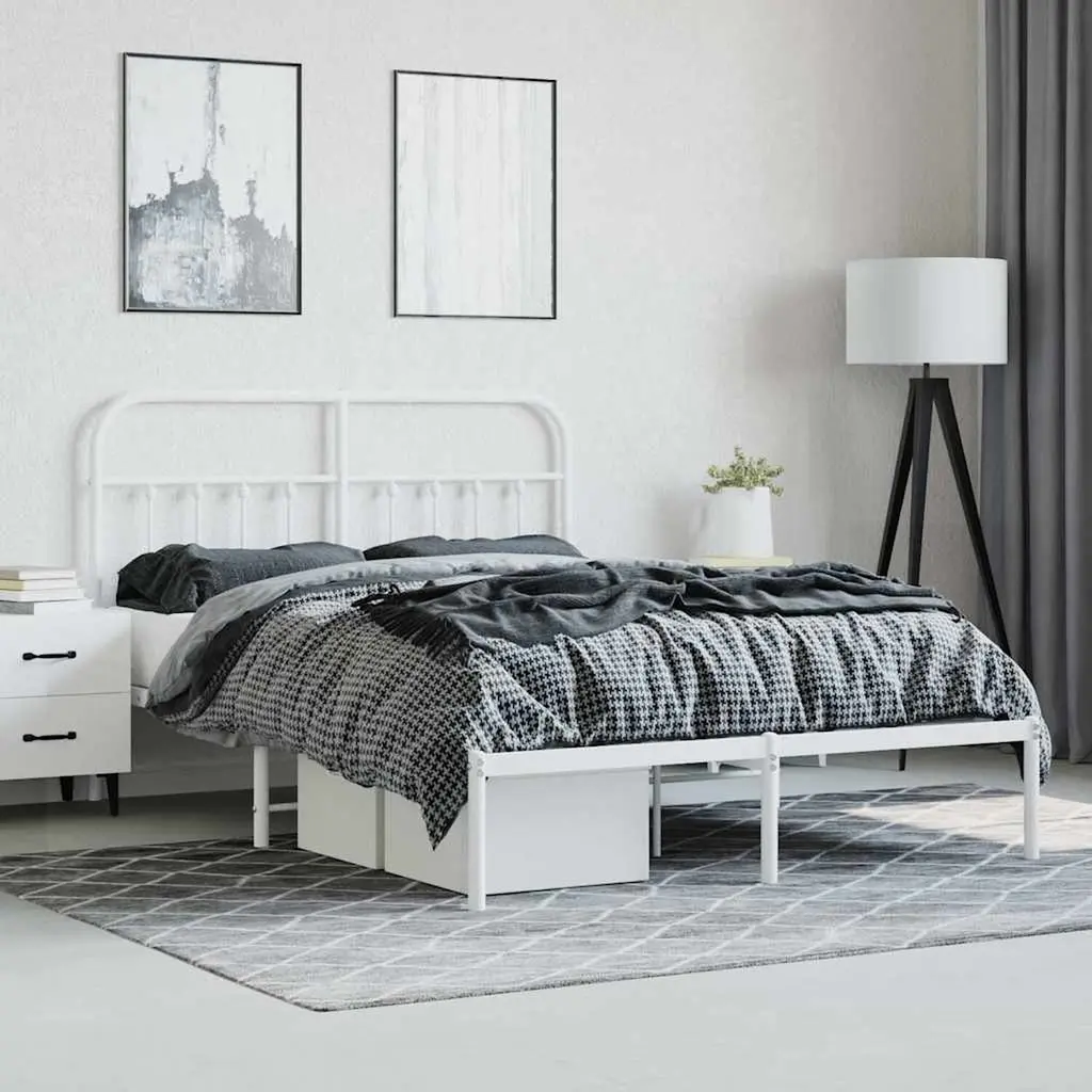 Vidaxl Bed Frame White Powder-Coated Steel King Bed Frame Rectangular