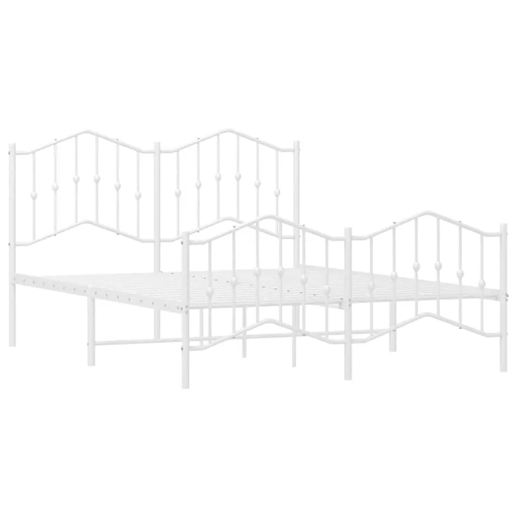 Vidaxl Bed Frame White Powder-Coated Steel King Bed Frame Rectangular