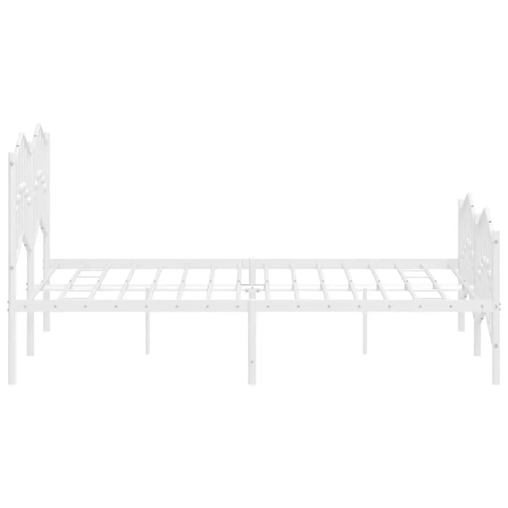 This bed frame is a stylish answer to your sleep needs. It mixes elegance and practicality to give your bedroom a posh touch. The powder-coated white finish and traditional vibe create a classic look that fits in nicely with different styles, making it the perfect highlight for cozy nights and bright mornings. The elegant design features a smooth finish that adds a nice touch to any bedroom.The durable metal build ensures stability and long-lasting use, perfect for everyday wear.This bed frame fits a mattress size of 60 x 79 in, giving plenty of space for two, ideal for couples or anyone who likes some extra room.Assembly is a breeze and can be done by two people, making it super convenient if you want something straightforward.With its strong supportive frame, you’ll be comfy and secure every night.