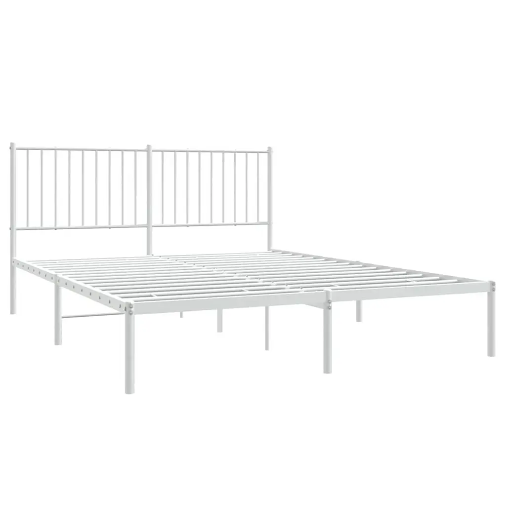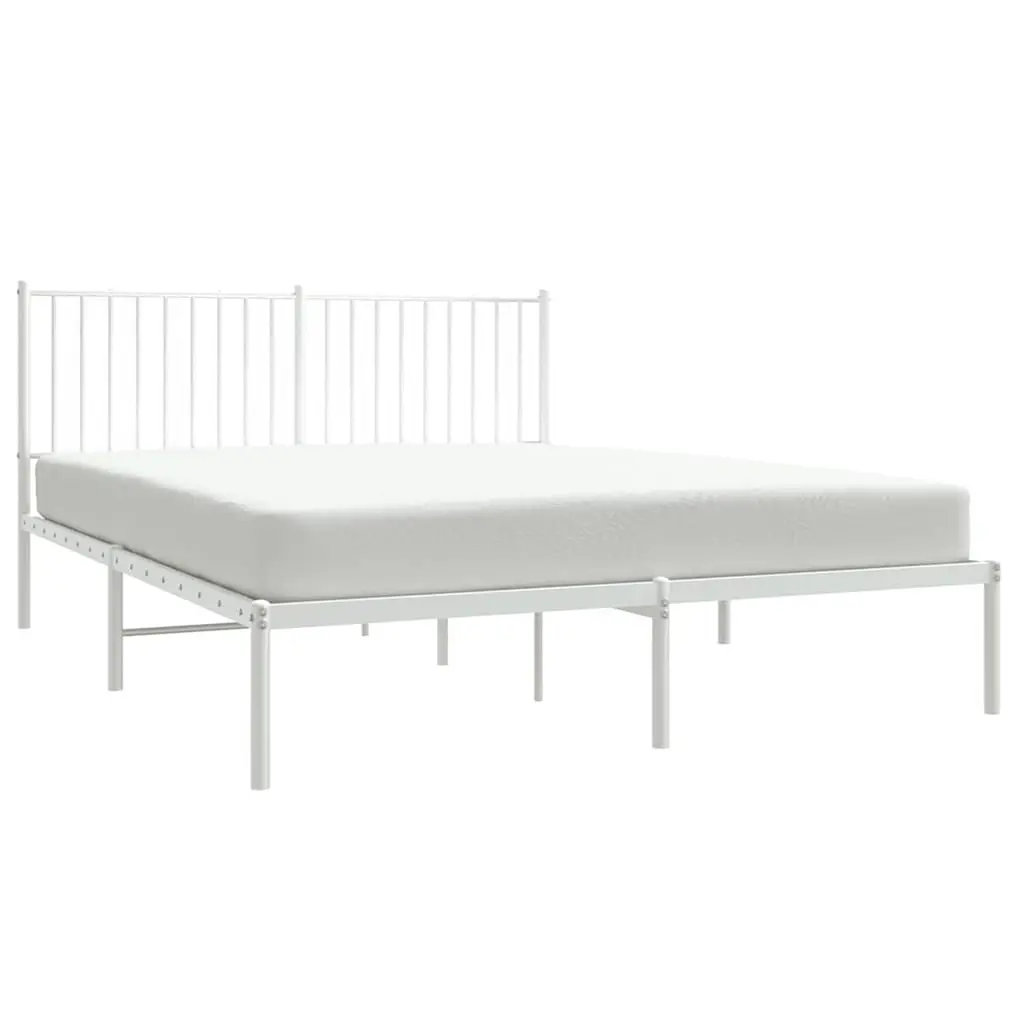 Vidaxl Bed Frame White Powder-Coated Steel King Size Bed Frame