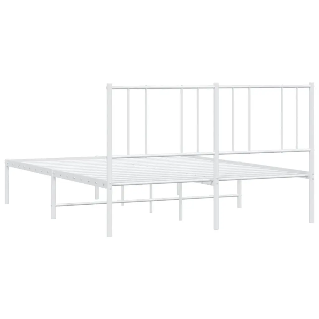 Vidaxl Bed Frame White Powder-Coated Steel Queen Size Bed Frame