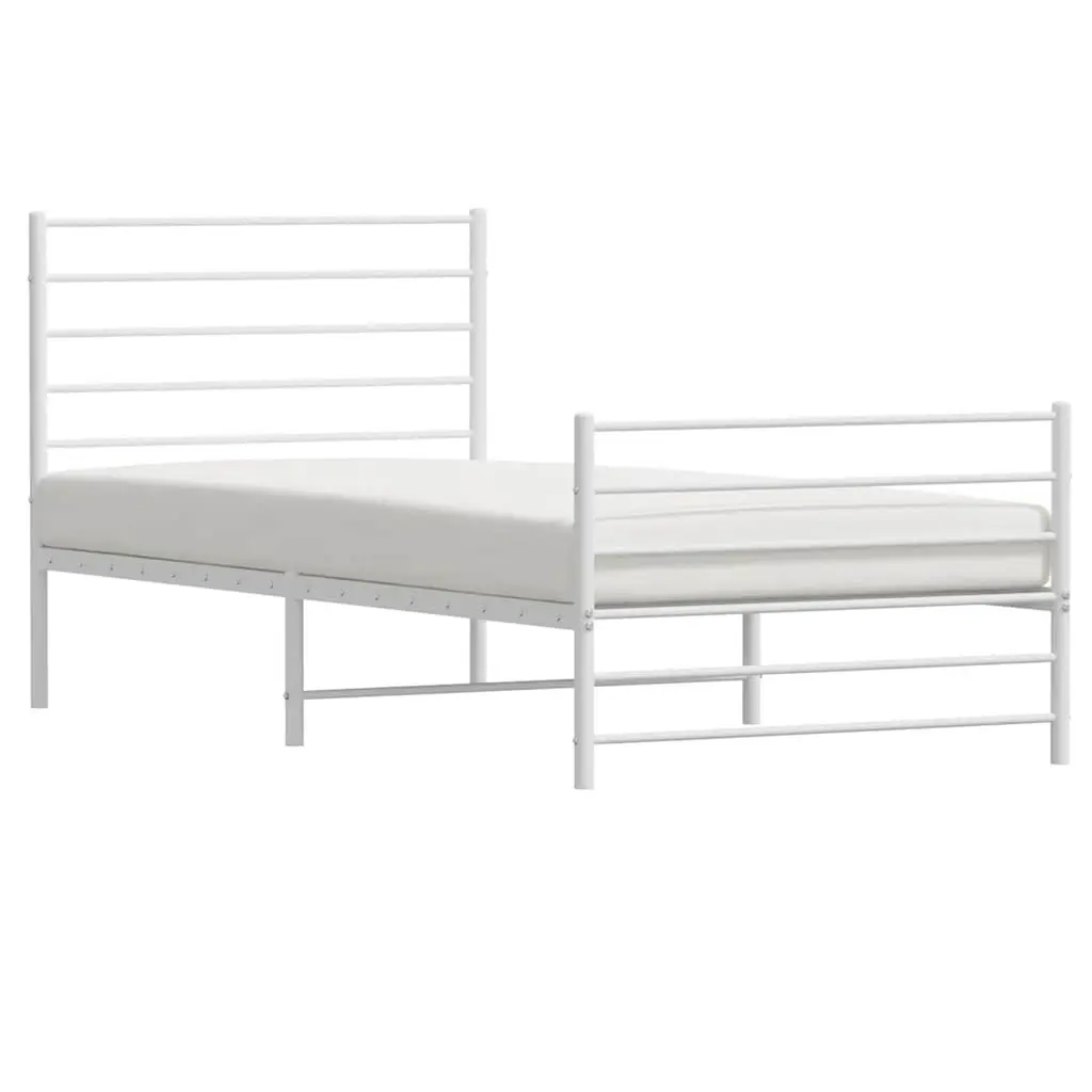Vidaxl Bed Frame White Powder-Coated Steel Single Bed Frame