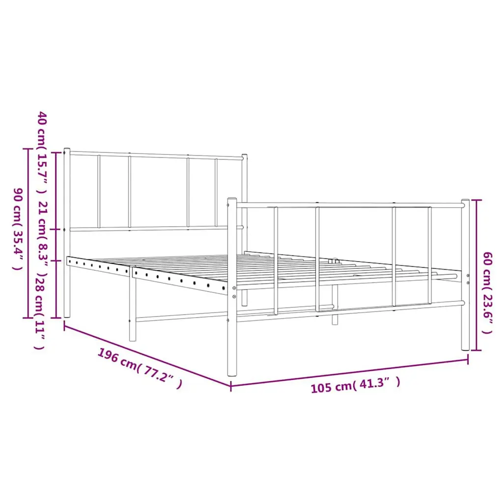 Vidaxl Bed Frame White Powder-Coated Steel Single Bed Frame