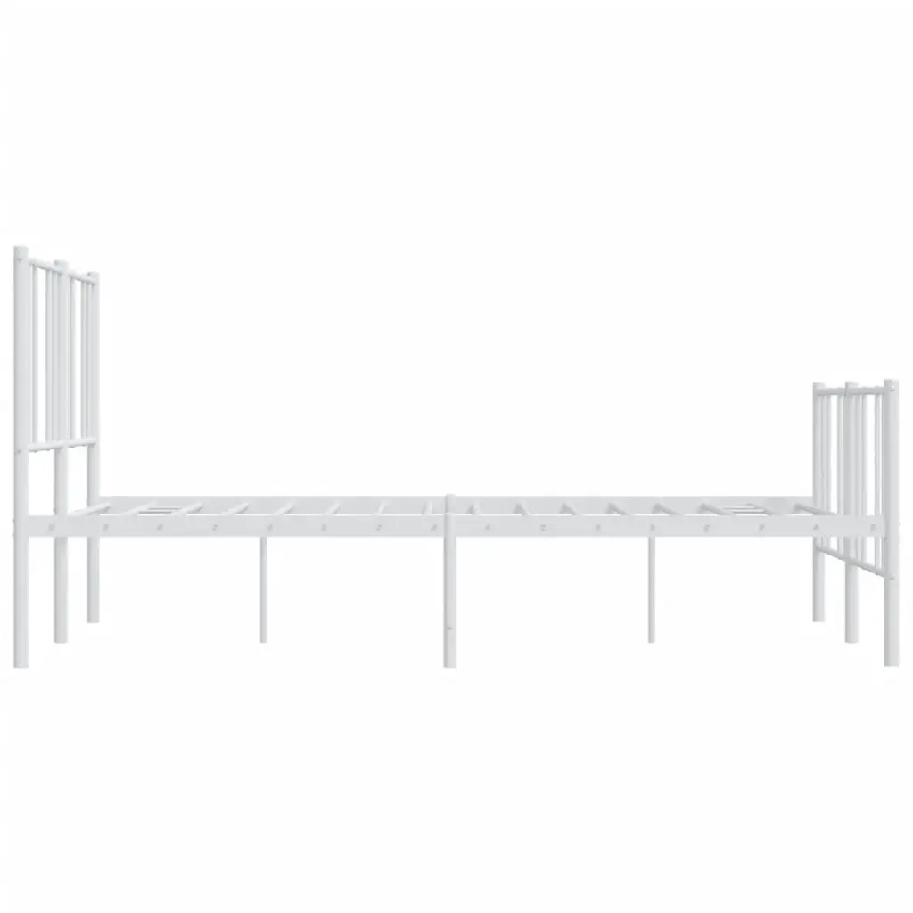 This White Metal Bed Frame with Footboard boasts a stylish and sleek design that fits right into any modern bedroom or guest room vibe. Made from solid powder-coated steel, its clean lines and minimalist style offer an elegant look while ensuring stability and support for a great night's sleep. Stylish Appearance: The all-white finish of this bed frame showcases a modern touch, effortlessly blending with various interior styles.Guaranteed Quality: Built from high-grade metal with a powder-coated finish, this bed frame is tough enough to handle wear while being easy to clean.Added Support: With metal slats and central legs, the frame promises a stable and secure sleep area for up to two people.Ample Storage Space: There’s space underneath for storing items, keeping your bedroom organized.Versatile Use: Perfect for both bedrooms and guest rooms, this bed frame adapts to all living situations, offering both style and practicality.