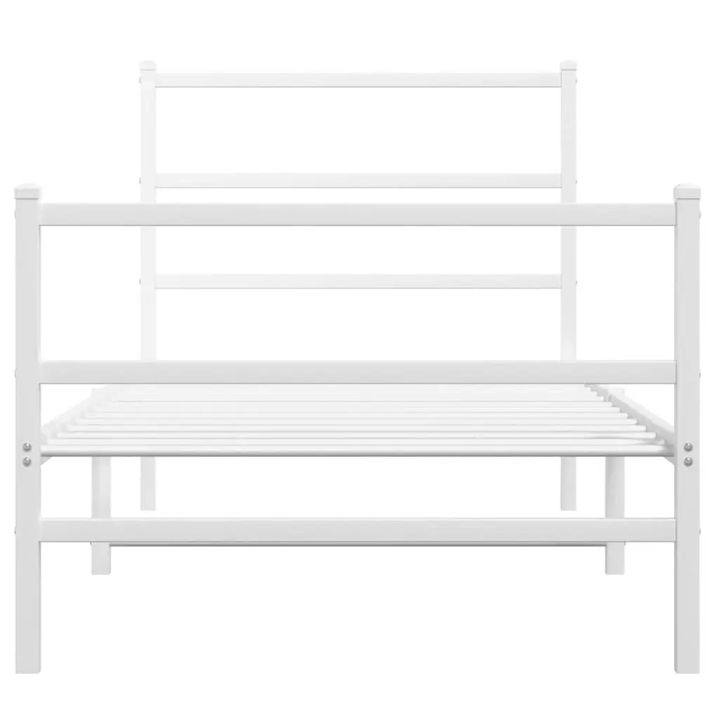 Vidaxl Bed Frame White Powder-Coated Steel Twin Bed Frame Rectangular