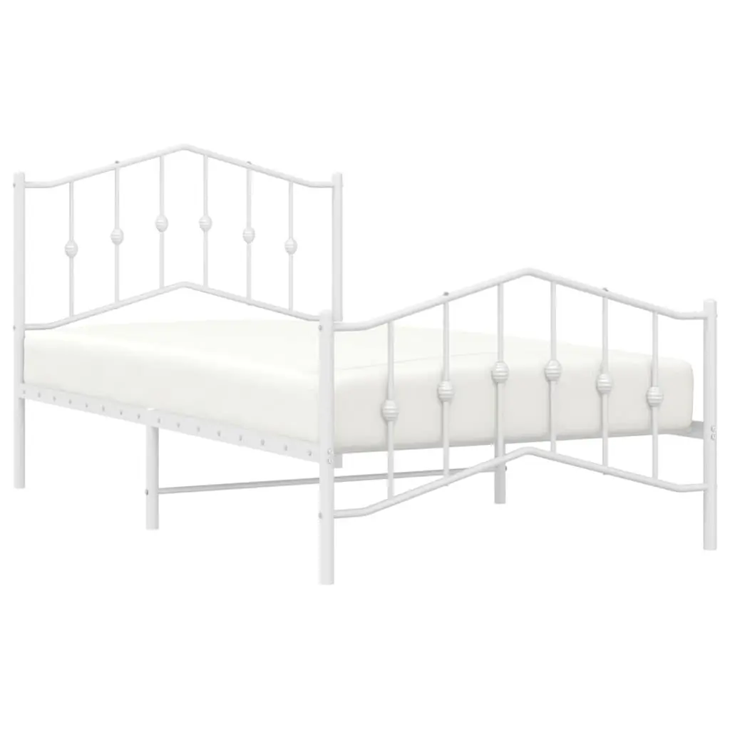 Vidaxl Bed Frame White Powder-Coated Steel Twin Bed Frame Rectangular