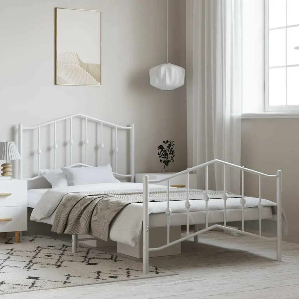 This bed frame is a fab addition to any bedroom, showing off a modern and minimalist style that’s great for those into simplicity and practicality. Its bright white color not only lightens up the space but fits in with any decor, making it the perfect focal point for a comfy retreat. Stylish Appearance: The sleek, powder-coated finish provides a contemporary look that enhances bedroom decor.Sturdy Construction: Made from high-quality steel, this bed frame is designed to take daily use while giving solid support.Ample Storage: The headboard and footboard offer extra space for personal belongings and decor.User-Friendly Assembly: Quick to put together with just a screwdriver, it includes clear instructions for everyone.Versatile Dimensions: At 41.3in x 77.2in, this bed frame fits nicely in various bedroom configurations, perfect for adults and guests.